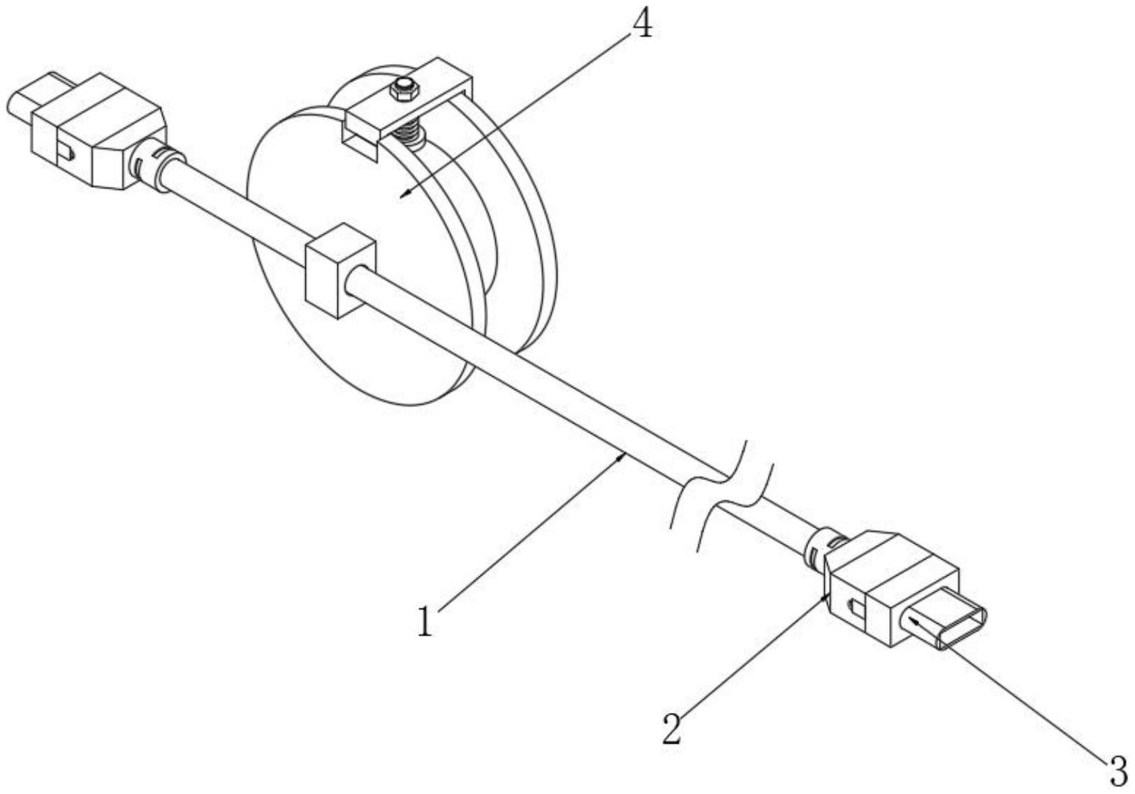 本实用新型涉及视频传输连接线技术领域,尤其为一种超高速视频传输连接线,包括连接线本体,所述连接线本体的两端均设置有连接头,所述连接头远离连接线本体的一端设置有插头,所述连接头靠近插头的一端开设有连接插槽,所述连接插槽内安装有多根公接针头,所述插头靠近连接头的一端设置有插入连接插槽内的连接插块,所述连接插块上开设有多个供公接针头插入连接的母接插槽,所述连接头与插头之间设置有卡接结构,通过设置的插头与连接头之间通过连接插块插入连接插槽内,将公接针头对应插入母接插槽内连接,通过设置的卡接结构提高连接的稳固性,从而能够将插头拆卸更换,便于对损坏的插头更换,降低视频传输连接线的使用成本。