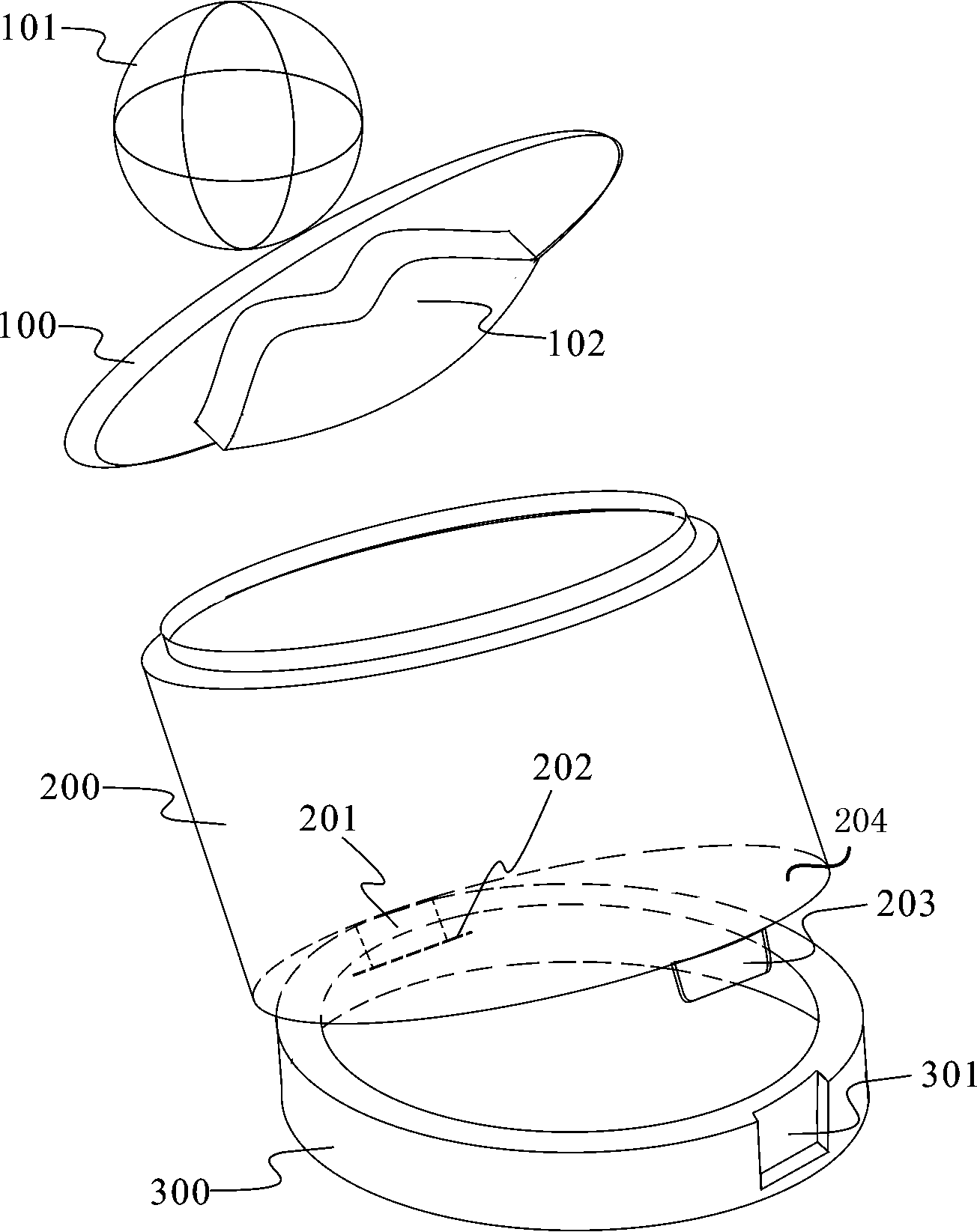 本实用新型公开了一种唇印化妆盒,包括,盖体、盒体和底座;所述盒体为上端开口、下端封闭的空心圆柱体;盖体分离式盖合盒体开口,盖体下端面设有海绵体、上端面设有手提部;所述底座设有敞开式凹槽用于存放膏体,侧面设有水平转轴;盒体下侧边缘与转轴对应的位置设有连接部,连接部一端连接盒体,另外一端连接转轴,盒体与底座可相对转动;盒体下端面在转动中开闭底座凹槽的敞开口。盒体与盖体的分离结构可以使盖体实现粉扑功能,与底座的旋合结构可以在化妆的时候无需另外防止打开的盒体,避免遗失,同时能保护膏体的完整性,使用十分方便。在非常细小的化妆盒内实现唇部的扑印效果,相对现有的推杆式唇膏直接触碰唇部明显得到更好的涂抹效果。