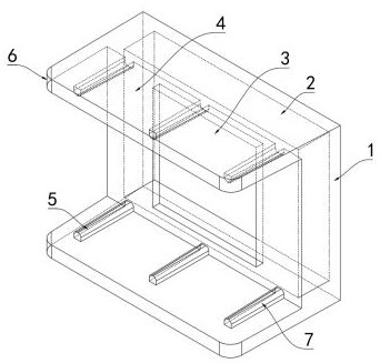 本实用新型公开了一种功率模块的绝缘隔离工件,包括底座,所述底座的底部设有底槽,所述底座的上端贯穿设有通槽,所述通槽与底槽相连通,所述底座的上端固定连接有两个竖板,两个所述竖板的相对面均固定连接有三个限位柱,所述底座、两个竖板、六个限位柱均为绝缘塑料材质,且所述底座、两个竖板、六个限位柱一体成型所述竖板与底座垂直设置,且所述竖板与底座相背端的两个拐角设有倒角,所述限位柱与底座垂直设置,且所述限位柱与竖板相背的一面为弧形面。本实用新型绝缘塑料压制而成,安装在模块的二脚,即中间脚,有效隔绝了各脚的爬电和间距,从而保护了功率模块。