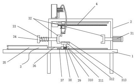 本实用新型公开了一种毛笔笔杆打磨喷涂设备,涉及毛笔加工技术领域,包括:支架、喷涂箱、打磨结构和喷涂结构,所述喷涂箱安装在支架的顶侧,所述打磨结构固定在支架的顶侧面,所述喷涂结构设置在喷涂箱的内腔内部,所述旋转电机通过螺栓配合安装在喷涂箱的侧壁一侧,所述旋转电机的输出轴贯穿喷涂箱的侧壁,所述限位杆通过轴承配合贯穿设置在喷涂箱的另一侧壁内部,通过设置打磨结构,能够对笔杆粗胚进行推进式旋转打磨,能够均匀连续性对笔杆打磨,能够保证笔杆圆周面光滑,便于拿捏使用,通过设置喷涂设备,能够对笔杆表面进行等间距喷涂,保证笔杆表面油漆喷涂相同均匀。