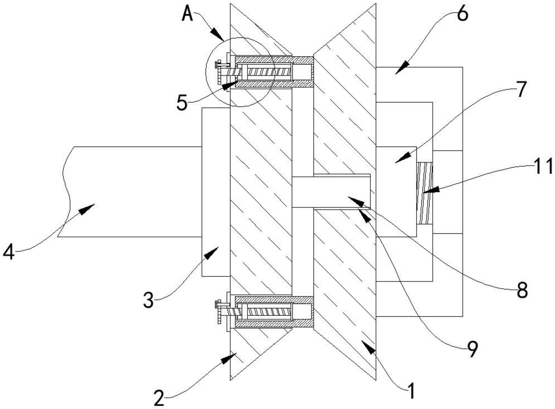 本实用新型公开了一种便于调节更换的绕线轮,包括绕线轴,所述绕线轴的一端套接有限位块,所述限位块的一侧安装有固定轮,且固定轮的一侧安装有固定块,所述固定轮的外侧套接有第二半轮,且第二半轮的两端均设置有调节机构,所述调节机构的一侧连接有第一半轮,所述第一半轮的内部设置有连接槽,且连接槽的内部安装有连接块。本实用新型通过旋拧调节杆带动螺纹块做水平运动,在螺纹块的配合下带动调节块做同步的水平运动,使得调节块再活动槽的内部做水平运动,调节块运动的同时推动第一半轮同步水平运动,继而带动连接块在连接槽的内部滑动,从而根据实际的使用情况来增加第一半轮与第二半轮之间绕线的范围。