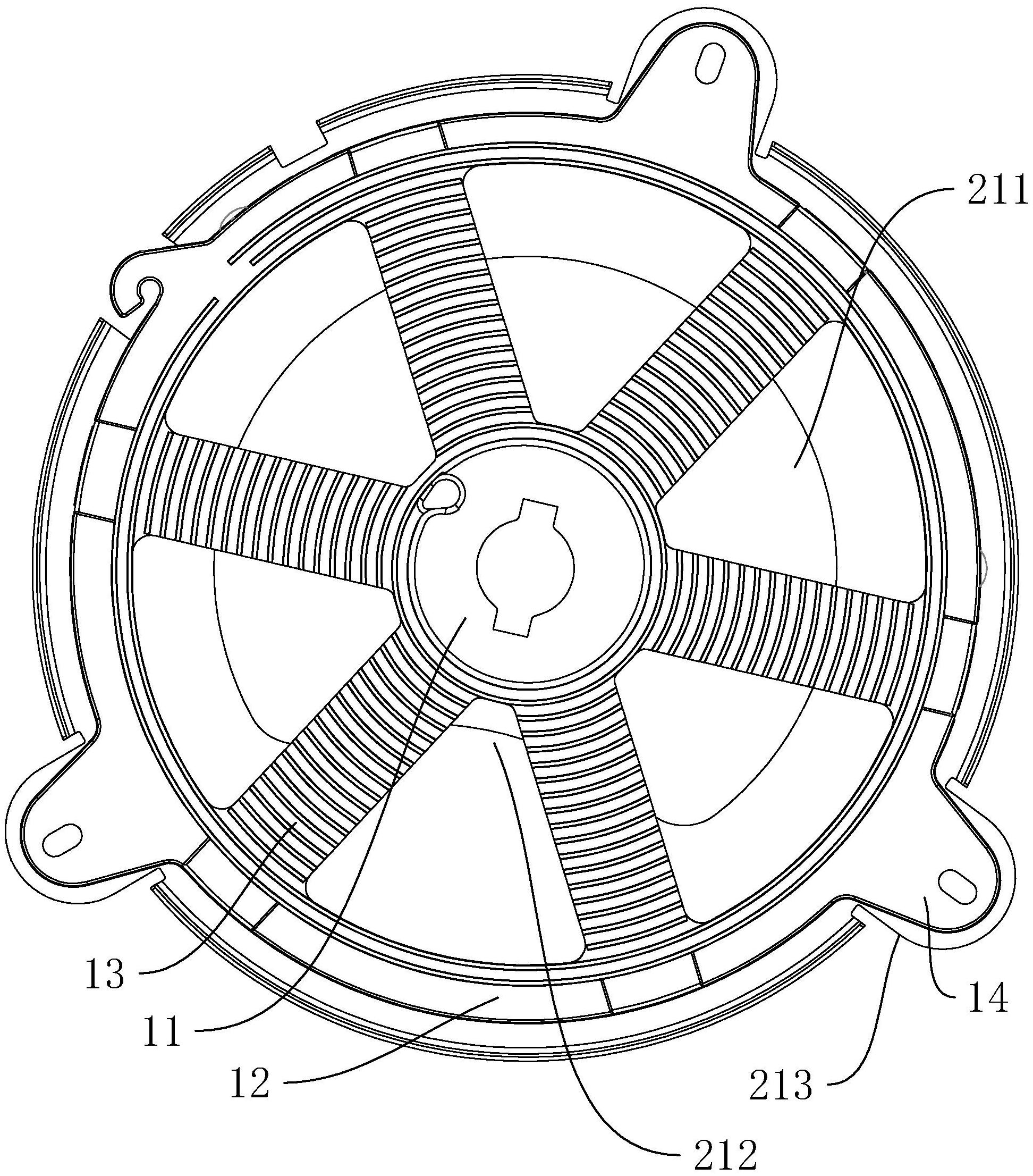 本实用新型公开一种线盘组件及电磁炉,其中一种线盘组件包括线盘支架,还包括锁磁套,所述锁磁套包括水平板、侧围板,所述侧围板设置有若干块,所有的侧围板和水平板之间围成一个锁磁空间,所述线盘支架设置于所述锁磁空间内,所述水平板上开设有散热孔,所述水平板上设有遮挡板,所述遮挡板从所述散热孔的边缘往所述散热孔的中部延伸,所述遮挡板固定连接散热孔内壁;该电磁炉包含了该线盘组件。本实用新型提供一种散热效果良好的线盘组件及应用该线盘组件的电磁炉。