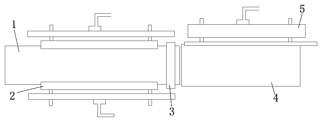 本实用新型公开了一种面膜盒包膜装置,括依次连接的上料机构、包膜机构和下料机构,所述下料机构包括下料传送带、重量感应器和下料推包机构,所述下料传送带位于包膜机构的输出端,所述重量感应器位于下料传送待的出口处,所述下料推包机构位于重量感应器的一侧,下料推包机构与重量感应器电连接。本实用新型通过在下料机构设置有重量感应器和下料推包机构,当重量合格的产品下料时,下料推包机构将产品推出,然后进行下步的装箱,当重量感应器检测到重量不合格的产品下料时,下料推包机构停止运作,同时发出警报,从而达到了检测不良品的效果。