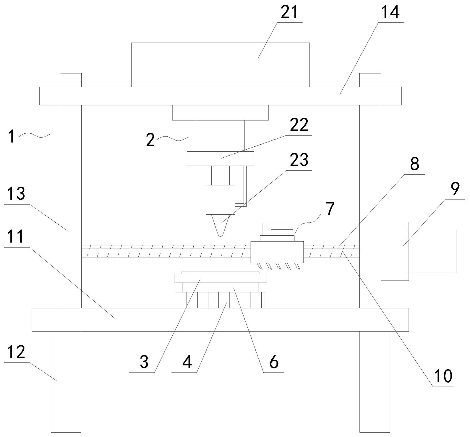 本实用新型公开了一种均匀涂胶的上胶装置,包括机架,机架远离地面一端设置有出胶装置,机架上与出胶装置相对应的位置设置有放置台,出胶装置与放置台之间设置有沿放置台设置方向做往复运动的涂胶装置。本实用新型无需手持涂胶,避免了高温胶水对工人的伤害,且操作方便,不会产生涂胶空缺,粘贴牢固,还能刮除废胶,适用于所有需要均匀涂抹胶水的生产工艺。