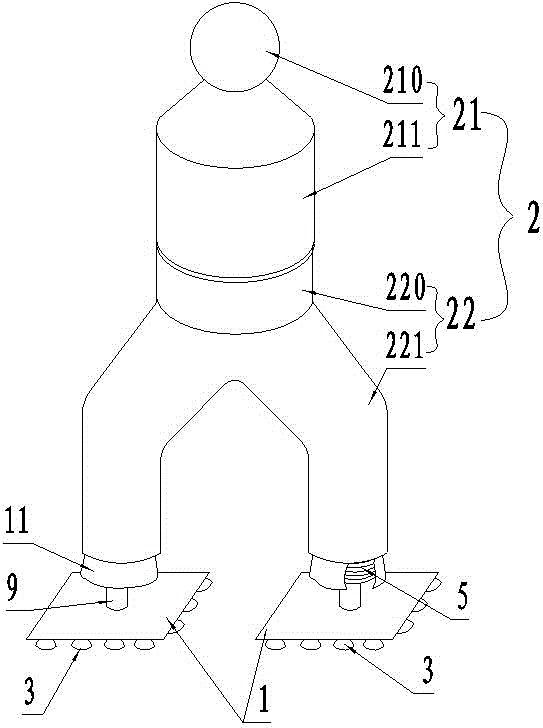 本实用新型公开了一种硅胶仿人搏击训练器,涉及运动训练器材技术领域,包括下设橡胶吸盘的底座和仿人靶体,仿人靶体内设刚性骨架、且下端通过弹性元件与底座相连,仿人靶体内充柔性填充物、外部包裹硅胶皮,在增强其耐磨性的同时提高安全系数,不易发生伤害事故,刚性骨架可起到支撑作用、使其保持直立状态,弹性元件连接底座和仿人靶体可使仿人靶体在击打过程中快速回弹,使用时将橡胶吸盘吸附在光滑地面,使训练器主体更稳定且不破坏地面。本实用新型具有结构简单、使用安全可靠的优点,环保耐用,搬运轻便,不受场地和时间限制,适合不同场所使用。