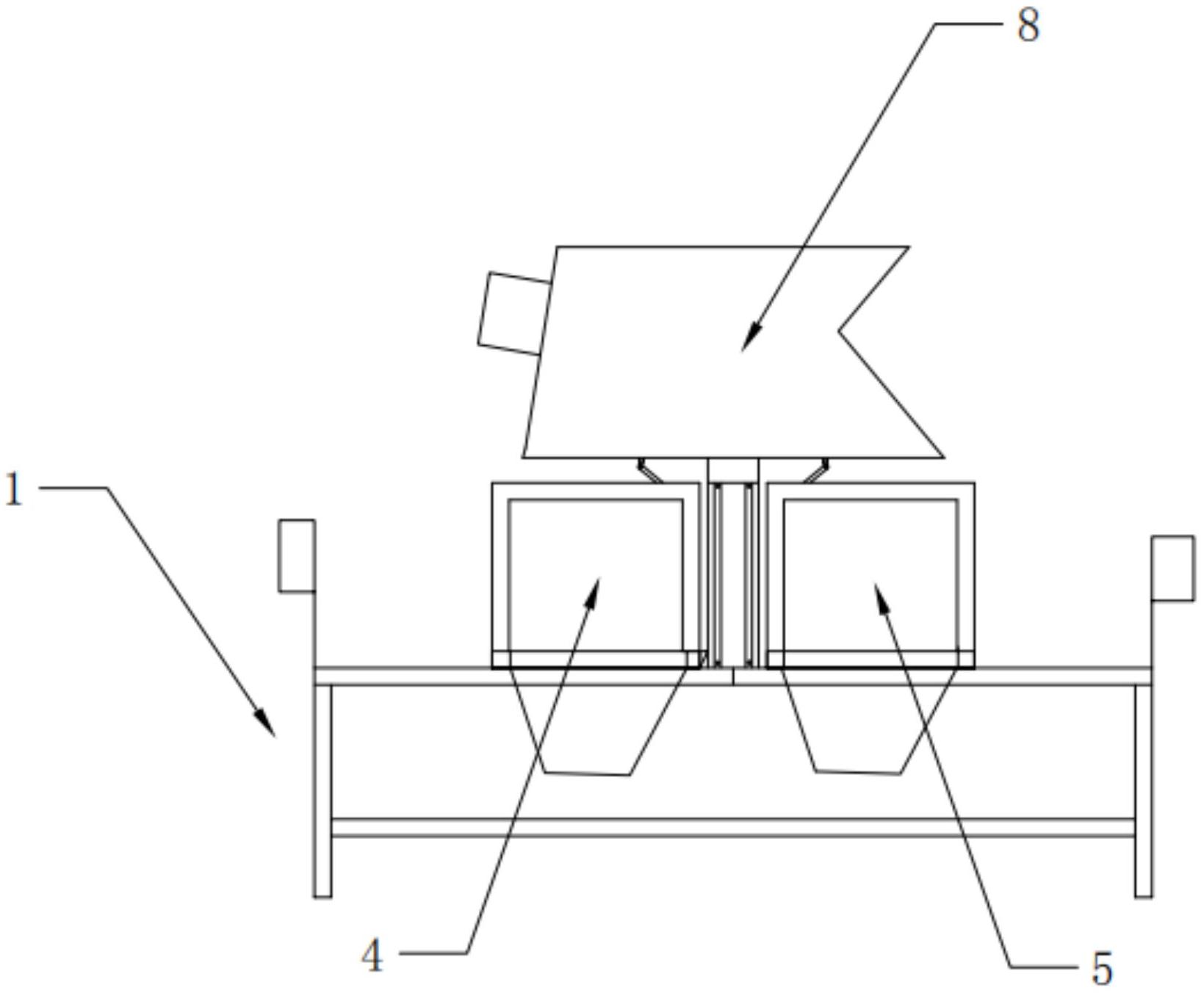 本实用新型公开了一种自动称重定量包装装置,属于食品设备技术领域,包括机架、并列设于机架上的第一进料斗和第二进料斗、设于第一进料斗和第二进料斗之间的固定柱、设于固定柱上方的储料仓、设于机架两侧的第一控制箱和第二控制箱,所述机架与第一进料斗和第二进料斗连接处设有称重感应装置,所述第一进料斗底部设有第一出料口,所述第二进料斗底部设有第二出料口,所述储料仓内部中心设有转换气缸,所述储料仓内部底部设有分别连接第一进料斗和第二进料斗的两个转换头,所述储料仓顶部设有储料仓进料口,本实用新型具有通用于各类生产,适用于多规格少批次的生产情况,有效提升了自动称重定量包装装置的实用性和工作效率的优点。
