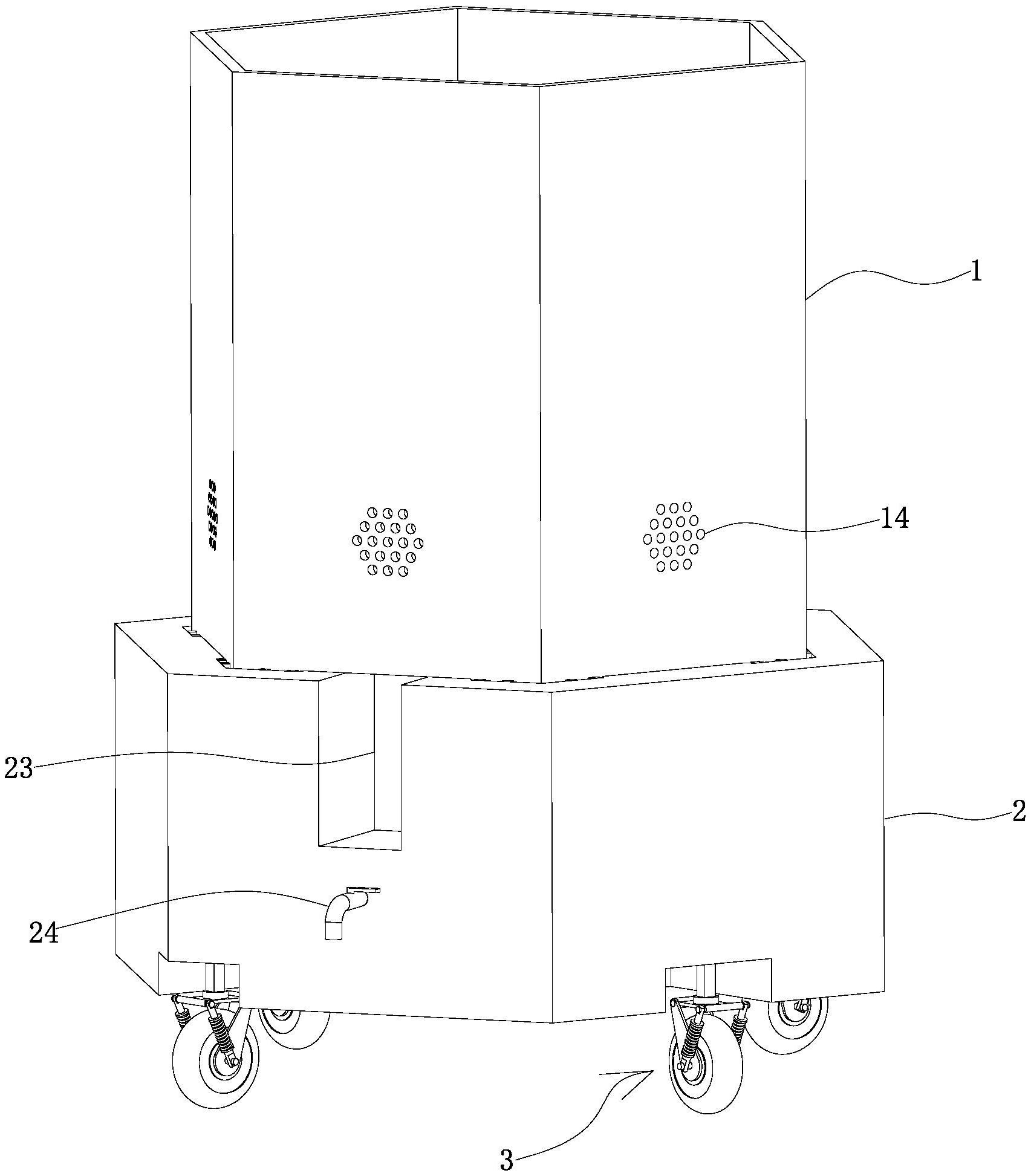 本实用新型涉及陶瓷制品技术领域,特别是一种陶瓷花盆。该种陶瓷花盆,包括花盆本体、设置在花盆本体下方的底座,底座上开设有排水槽,底座绕排水槽阵列有若干放置槽;花盆本体底面开设有与放置槽对应的排水孔,花盆本体底部阵列设置有若干支撑脚,各支撑脚外周阵列排布有若干凸块,各支撑脚分别与各放置槽对应的插接于放置槽内,凸块与放置槽内壁贴合,使支撑脚与放置槽之间形成通气缝。本实用新型解决了花盆与底座连接产生负压不易分离的问题。