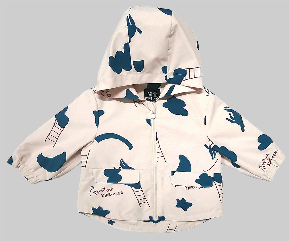 1.本外观设计产品的名称:童装外套(天马行空)。2.本外观设计产品的用途:本外观设计产品用于儿童穿着衣物。3.本外观设计产品的设计要点:在于形状与图案的结合。4.最能表明设计要点的图片或照片:主视图。5.本外观设计产品为薄型产品,省略左视图、右视图、俯视图、仰视图。