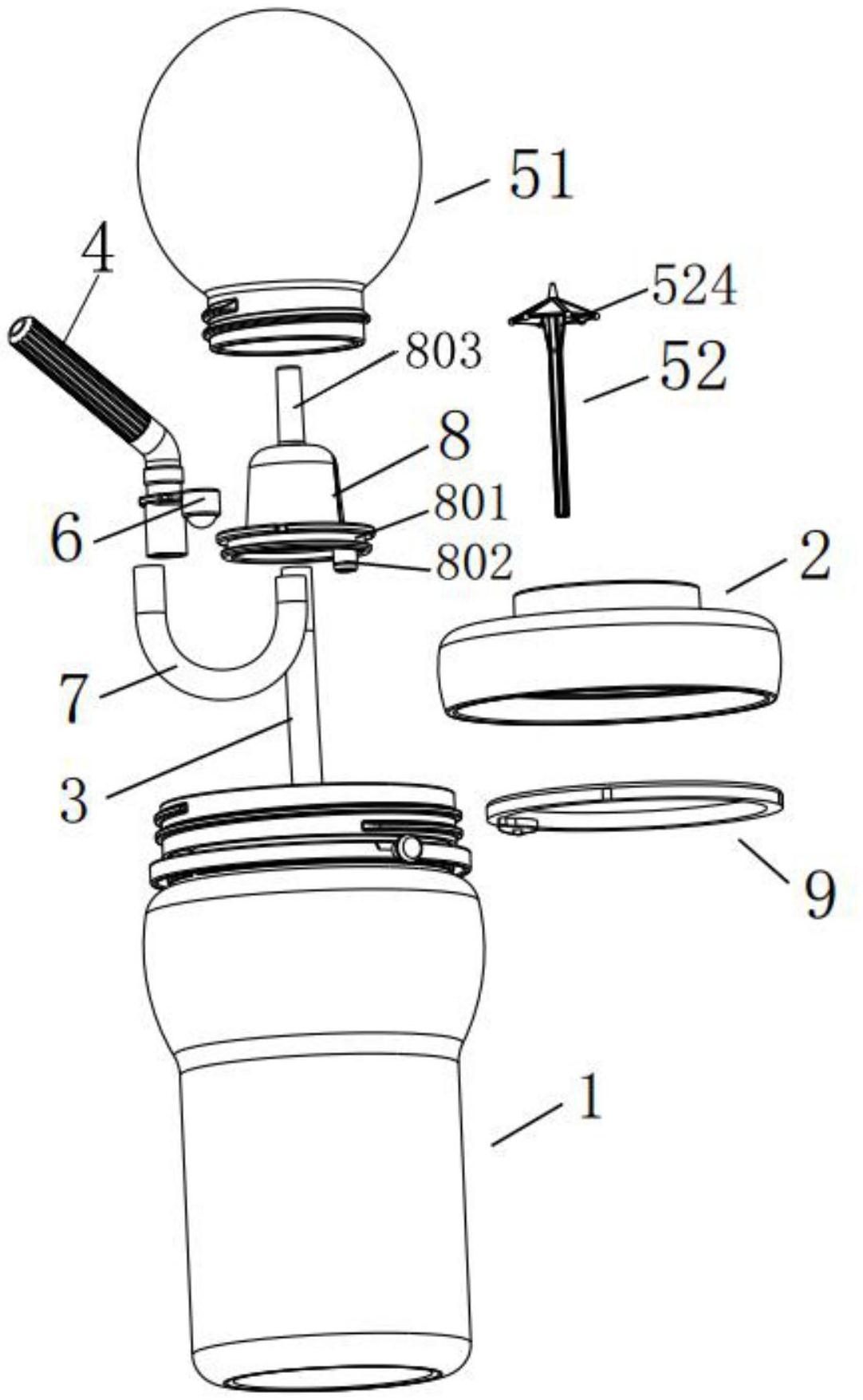 本实用新型公开了一种喷泉吸管杯,其包括杯体、旋盖、吸管、吸嘴及喷泉组件,该喷泉吸管杯设有可使杯体内外大气相通的透气阀和透气孔,所述吸嘴的一端穿入所述旋盖内部并与所述喷泉组件相连,所述吸嘴外壁与所述旋盖之间是密封连接;所述喷泉组件包括透明瓶体、硅胶密封件和导流部件,所述透明瓶体口部通过所述硅胶密封件与所述杯体口部密封连接,所述导流部件的直线型伞柄安装在所述硅胶密封件上。通过设置所述喷泉组件,以及配合透气阀等结构,本申请能够在饮水时实现类似喷泉的视觉效果,并更有利于吸引儿童多饮水,因此大大提升了使用体验。