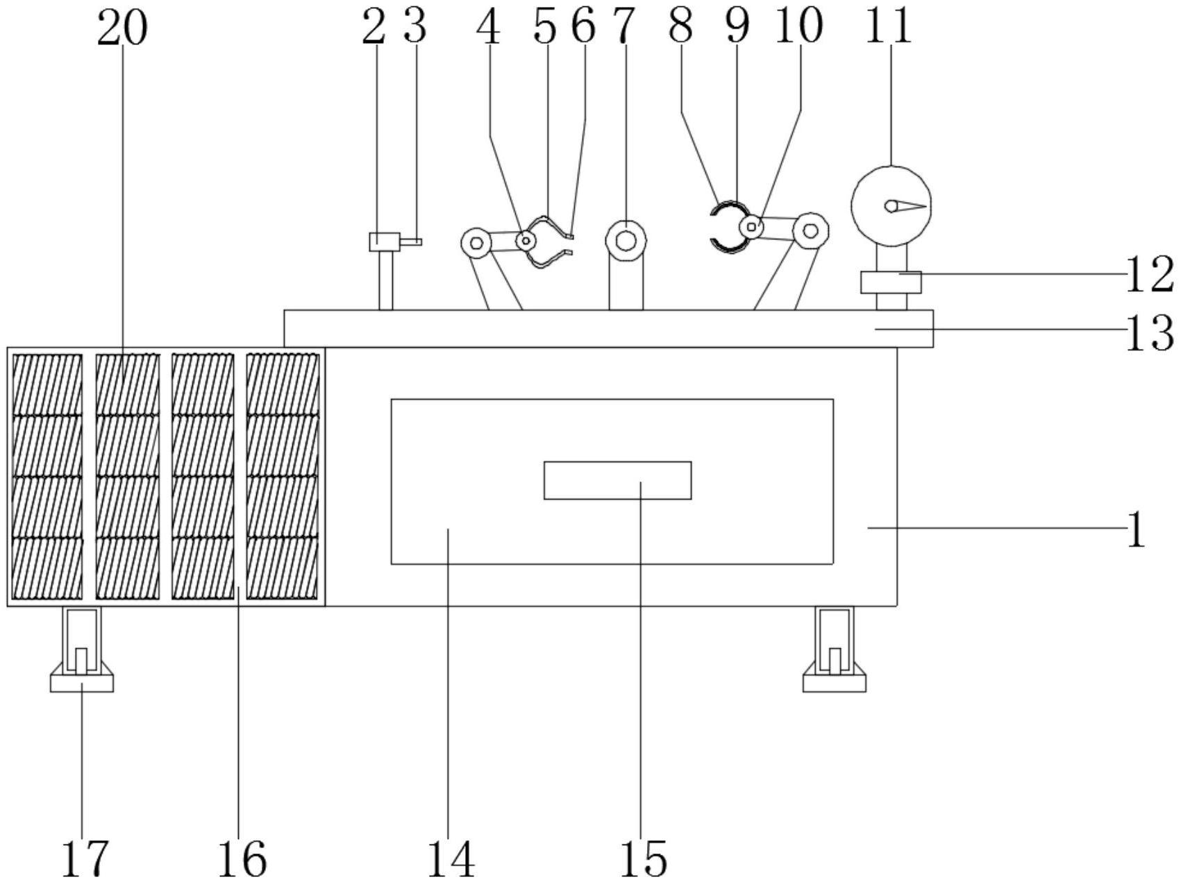 本实用新型属于臂力器技术领域,尤其为一种用于臂力器的自动化组装设备,包括壳体,壳体的内侧面滑动安装有盛放箱,壳体的一侧焊接有放置箱,壳体的下端面焊接有支撑杆,支撑杆的数量为两组,放置箱的内侧面胶接有软垫,软垫的材质为发泡橡胶,壳体的上端面焊接有操作台,操作台的上端面焊接有盛放板,盛放板内侧面焊接有压力表,压力表的后端面转动安装有传送带,压力表的一侧转动安装有第二转轴。本实用新型通过设置软垫,避免弹簧管与箱体内壁间直接接触,防止弹簧管被磨损,延长弹簧管的使用寿命,通过设置防滑垫,增大弹簧管与握把间的摩擦力,防止弹簧管与握把进行组装时弹簧管滑动的情况发生,提高组装速度。