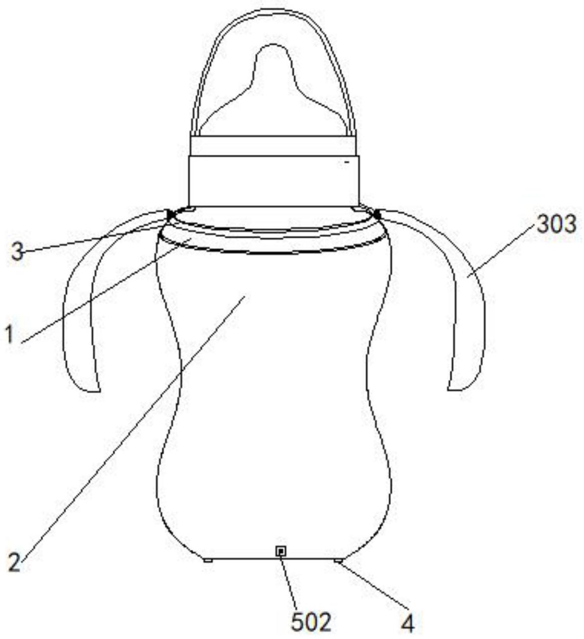 本实用新型属于吸食液体食物用具技术领域,尤其为一种方便使用以及便于携带的奶瓶,包括瓶身,所述瓶身的外侧壁上端套接有限位套环,所述限位套环的左右两侧均固定连接有U型卡件,两个所述U型卡件的内部均活动连接有L型卡板,两个所述L型卡板的另一端均固定连接有握把,两个所述U型卡件相对的一侧均设置有旋钮,两个所述旋钮相背的一端均固定连接有螺杆,两个所述螺杆的另一端均贯穿U型卡件和L型卡板并延伸至U型卡件的内壁,从而达到了外出携带奶瓶时方便将两个握把从瓶身上拆卸进行携带的效果,避免携带过程中两个弯曲的握把容易占用过多容纳空间的问题。