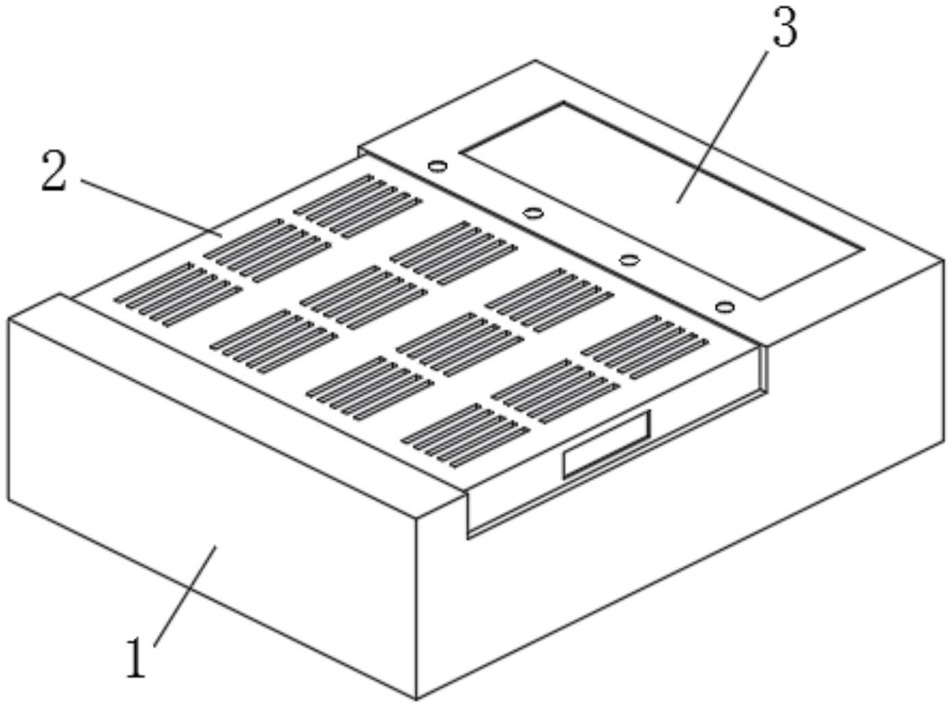 本实用新型涉及充电器防护技术领域,且公开了一种充电器防护结构,防护盖板的底部均匀设置有分隔插板,电池充电仓的底部均匀设置有电池充电槽,防护盖板通过分隔插板设置于电池充电槽的上部,分隔插板对电池充电槽内的电池进行独立分隔,本充电器防护结构采用分隔式的防护结构,在防护盖板的底部设置有多个分隔插板,使防护盖板的底部形成独立的分隔防护槽,并通过分隔插板与电池充电仓内电池充电槽的插入卡接,完成对防护盖板的连接固定,使防护盖板的安装与拆卸更加方便快捷,使用时防护盖板遮蔽在电池的外部,通过分隔防护槽对电池进行独立分隔,可避免电池自燃时,其火焰波及相邻的电池,大大提高了充电器的安全性。
