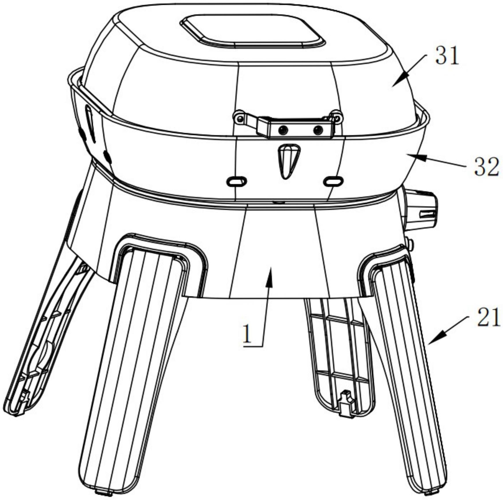 本实用新型公开了一种便捷式小型烤炉,包括底座以及炉体,所述炉体可设置在底座上,所述底座内设置有燃烧装置以用于向炉体加热,所述底座底部设置有折叠装置,所述折叠装置包括多个支撑脚,所述支撑脚可转动地设置底座底部以用于支撑底座底部。本实用新型通过设置折叠装置以提高产品的便捷性,当打开支撑脚时,支撑脚可以对底座进行支持以实现户外烧烤,当需要收纳携带时将支撑脚进行折叠即可,方便户外以及携带。