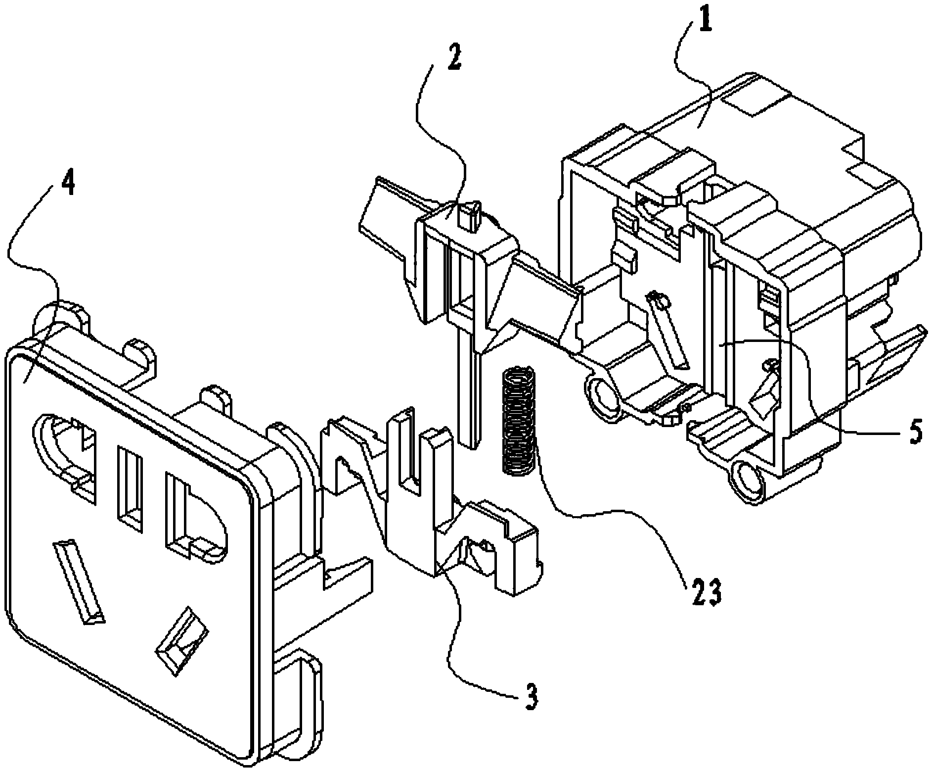 本实用新型涉及插座技术领域,尤其涉及一种插座保护门结构,包括底座、二插保护门、三插保护门以及盖体,所述底座上设置有二级插孔及三级插孔,所述二插保护门包括第一驱动体、活动基座、导向部以及压缩弹簧,所述活动基座上设有滑道;所述三插保护门包括第二驱动体以及对称设置在第二驱动体上的导向支架,所述第二驱动体上开设有安装套孔,所述安装套孔内壁还设有与压缩弹簧尾端配合抵触连接的限位圈,所述导向支架受外力作用能够在滑道上动作,本实用新型结构设计合理,在插头插入插座时,通过二插保护门与三插保护门的配合联动,能够有效改善插头插入的稳定性,避免保护门低头翘尾及极限状态下探针插入的情况,提高了插座的使用性能。