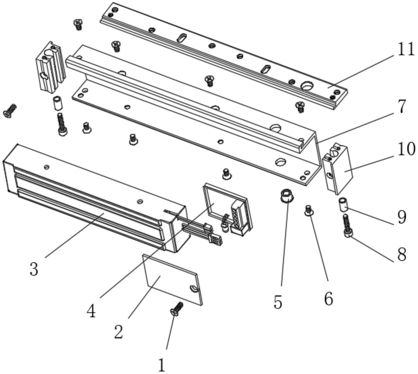 本实用新型公开了滑轨挂装式磁力锁,包括锁芯、设置在锁芯外侧的U型外壳,与U型外壳配合的锁体吊装条,与锁芯配合的吸板,所述U型外壳的两端设有固定座,所述锁芯的一端设有PCBA,所述U型外壳的顶面设有倒钩,所述锁体吊装条靠近倒钩的位置开设有倒钩槽,且倒钩可以与倒钩槽相互配合。本实用新型U型外壳上的倒钩可以起到导向和固定作用,保证U型外壳与锁体吊装条配合时更加吻合,且无需托举锁体,方便安装,倒钩和倒钩槽配合也可以提高U型外壳与锁体吊装条之间安装的牢固性,使锁芯更加牢固,PCBA可以将电力输送至LED灯,使LED灯发光,光可以通过透明导光柱射出,使U型外壳的位置可以发出光亮,起到警示作用,提高了安全性。