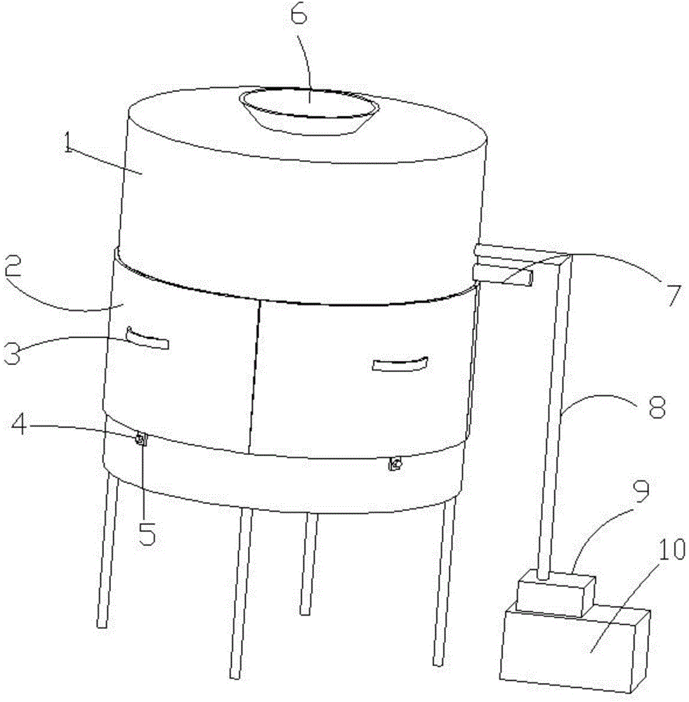 本实用新型公开了中药材加工技术领域的一种白首乌去皮机,包括去皮箱,去皮箱有进料斗和镂空桶,镂空桶有喷管,喷管有直管,直管有环形管,环形管有出气管,出气管与加压风机连接,加压风机与蒸汽箱连接,镂空桶有挡板,挡板与电动推杆连接;去皮箱有支撑板,支撑板有直孔,支撑板有电机,电机有第二皮带轮,第二皮带轮有第二皮带,第二皮带有第三皮带轮,第三皮带轮有转轴,转轴上有第一皮带轮,第一皮带轮有第一皮带,转轴有转动杆,转动杆有刷毛,去皮机去皮省时省力,利于企业量化生产。