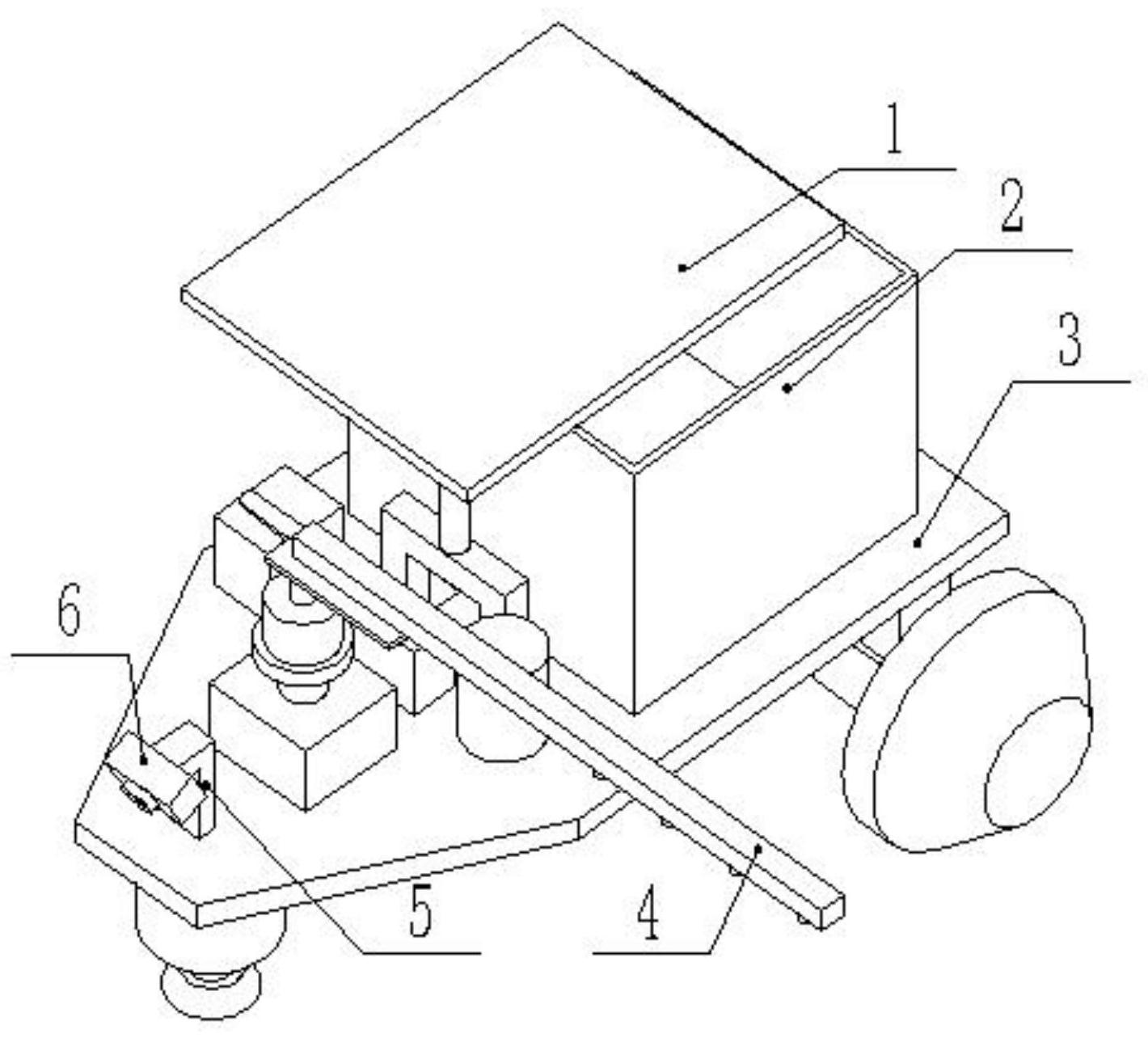 一种农业用草莓喷药装置,属于农业设备领域,所述第一支架安装在基板上,其位于基板左侧上方,所述前摄像头安装在第一支架上,所述车轮安装在电动机转轴上,其数量为两个,所述电动机安装在第三支架上,所述万向轮安装在第一液压缸上,其位于第一液压缸下方,所述第一液压缸安装在基板左侧下方,所述出药管安装在药泵上,其另一端安装在喷雾杆上,该发明通过第二液压缸的动作调节喷雾杆高度,通过药泵的运行和喷雾杆的喷洒实现了药液的喷洒,代替了人力喷洒农药,提高了工作的精度,避免了工人果断接触农药,保护了工人的健康,通过步进电动机的运行,实现了更换喷洒农药的位置的功能,降低了工作的强度,节约了时间,提高了工作效率。