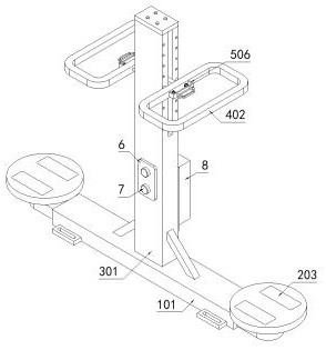 本实用新型提供户外双人智能扭腰训练器,涉及实验教具技术领域,以解决现有不便于不同身高的用户使用,扭腰训练时脚部易出现打滑的问题,包括固定装置;所述固定装置的顶部安装有安装组件,且安装组件的前侧安装有安装板,并且安装板的前侧固定安装有两个按钮;所述安装组件的后侧安装有防护罩和蓄电池,且蓄电池位于防护罩的内部;扭腰组件,所述扭腰组件共设有两组,且两组扭腰组件安装在固定装置上;防护装置,所述防护装置共设有两组,且两组防护装置安装在安装组件的左右两侧,且两组防护装置上安装有限位机构;本实用新型两个踏板在用户体重的作用下向下移动,避免了扭腰训练时脚部出现打滑,提高了扭腰训练时的安全性。