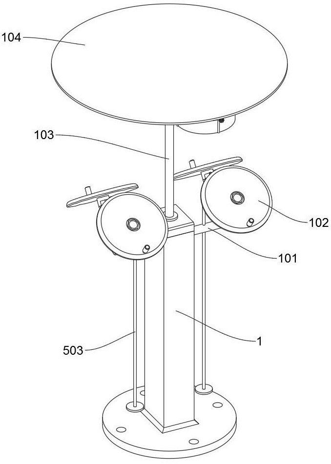 本实用新型提供一种智能太极推揉器,涉及社区健身器材领域,包括:竖撑安装柱,所述竖撑安装柱的截面呈方形结构,且竖撑安装柱的底部焊接一处圆形安装盘,竖撑安装柱的最顶端焊接有一处竖撑柱;所述竖撑安装柱的顶端段上呈左右对称焊接有两处安装架,两处安装架均由一处水平撑管和焊接于水平撑管首端的V形支撑件共同组成,且两处安装架上两处V形支撑件的首端转动安装有四处推揉轮盘;所述圆形遮板的底部圆周外圈位置呈前后对称吊装有两处风机,两处风机采用外置供电,四处弧形卡板以及橡胶刹车垫可抵靠挤压四处转套,将四处推揉轮盘在短时间内减速刹车,避免高速旋转的四处推揉轮盘不能被及时停转,容易对孩童双手以及手臂造成碰撞伤害。