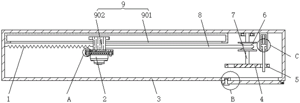 本实用新型公开了一种大提琴拾音器,包括大提琴本体,大提琴本体底部右侧开设有延伸到大提琴本体内腔的连通孔,连通孔下方的大提琴本体底部右侧通过合页转动连接有盖板,大提琴本体内腔顶部的左侧固定安装有滑行机构,滑行机构的底部固定安装有磁铁板,磁铁板底部设置有与磁铁板相匹配的钢板,钢板底部的中间位置处固定安装有拾音器本体。该大提琴拾音器通过拧掉螺栓与螺孔分离,然后转动盖板并使得手部伸入大提琴本体的内腔中并推动金属圆杆与定位孔分离,然后转动定位横盘带动连接轴和卷带盘转动进而收卷连接带并通过滑行机构带动拾音器本体向右侧移动,然后拉动钢板与磁铁板分离进而拆除拾音器本体。