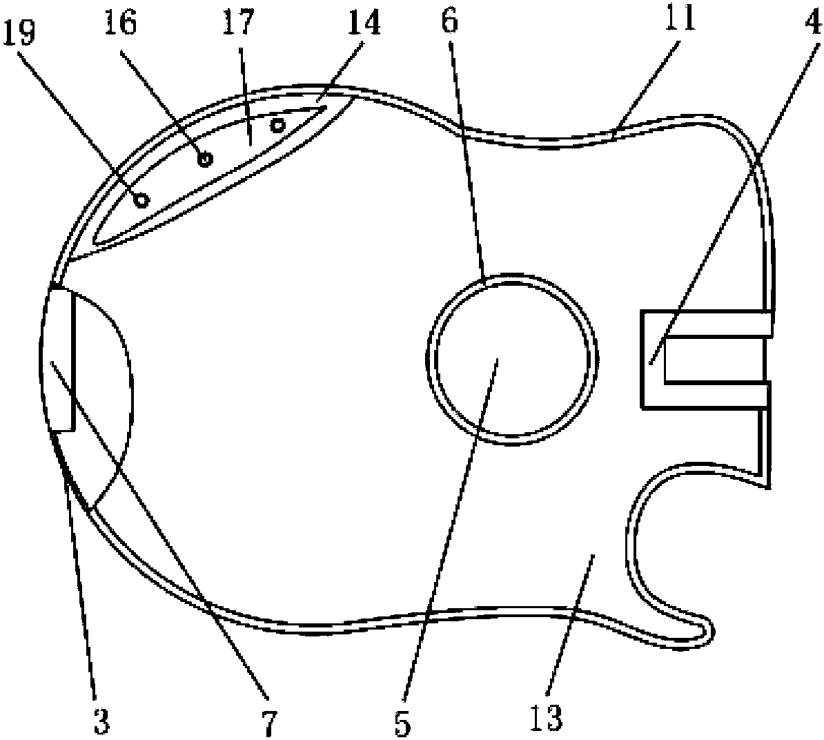 本实用新型公开了一种木吉他琴箱。通过音孔包边圈的设置,可避免演奏时手指与音孔的边缘发生刮擦而受伤,通过包边安装槽的设置,便于包边的装卸,避免使琴箱过厚,通过包边的设置能够使琴箱的边缘受到的碰撞减弱,避免发生损坏,通过包边上卡接部和装置软板的配合设置,使得装饰软板便于装卸更换,使装饰效果丰富多样,通过护垫安装部、固定螺钉、护垫块和垫片的配合设置,使得护垫块和垫片便于装卸,且垫片可根据需求安装适宜的个数,使得护垫块的高度可以进行适当调节,便于不同人进行使用。本实用新型使吉他装饰变得简单,装饰效果丰富多样,且避免手臂经常直接与琴箱的边缘发生摩擦,使用舒适,可调节性强。