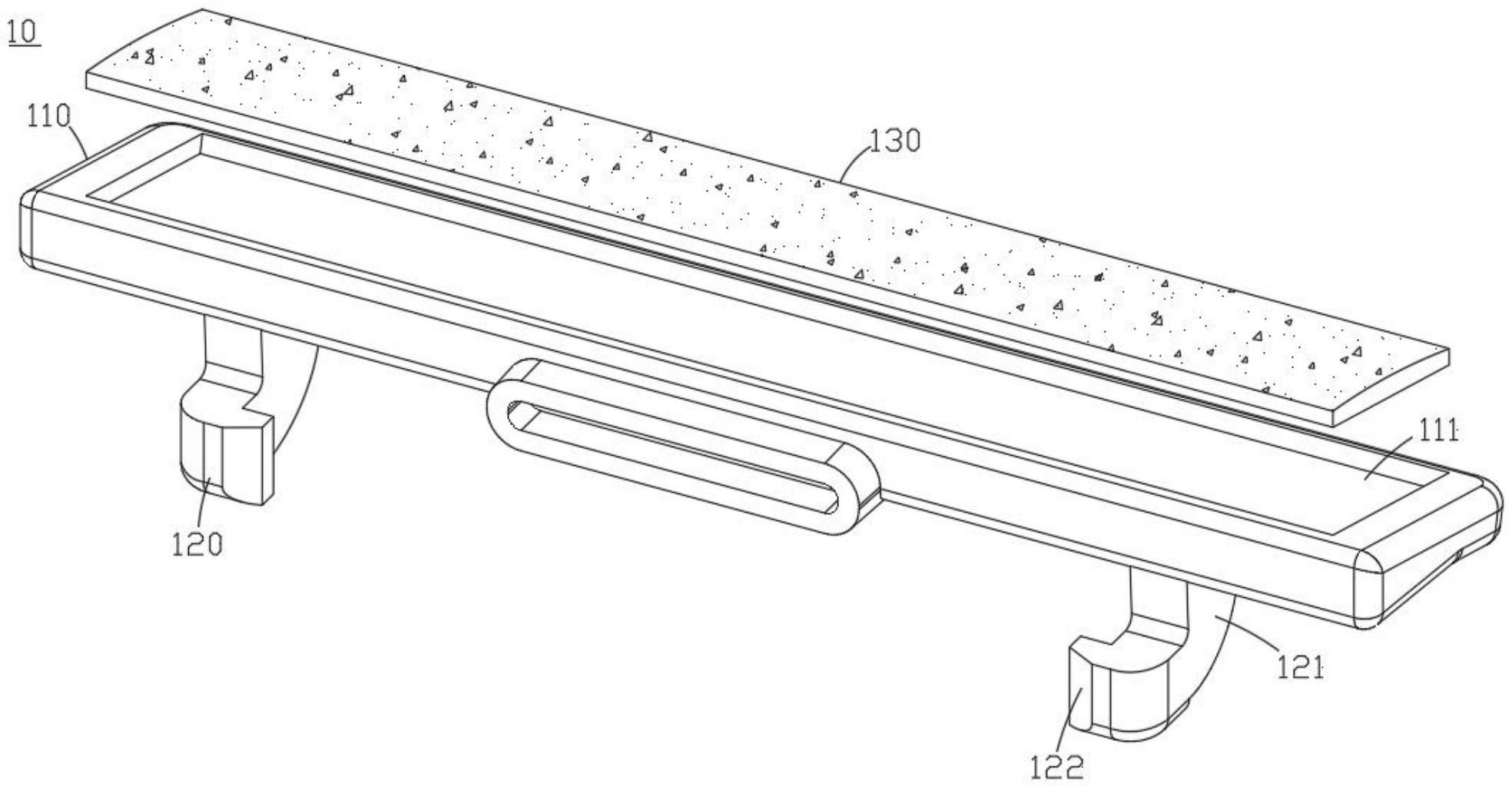 本实用新型属于剃毛刀技术领域,具体公开剃毛刀润滑件,包括支架、润滑元件。支架,一面具有元件安装位;安装脚,用于连接刀头组件,具有连接脚,一端连接于所述支架的安装面,卡件,设置于所述连接脚远离支架的一端;润滑元件,设置于元件安装位。本实用新型可以实现润滑件的可拆卸安装,使得润滑件与刀头的使用寿命可以分离,可根据需要配合使用。并且,可以增加润滑元件的量,从而使得润滑面积更大,更加便于剃毛。