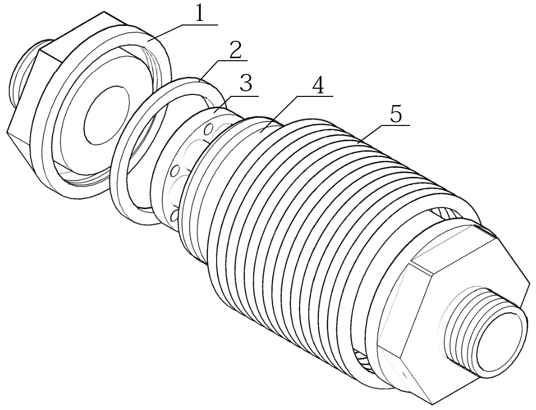 一种多芯的感应加热装置其特征在于:所述的感应加热装置包括密封盖,密封圈,感应体,绝缘套管,感应线圈,所述的感应体设置于绝缘套管中,所述的绝缘套管上设置有感应线圈,所述的绝缘套管与密封盖旋紧并在两者之间设置有密封圈密封。感应体的感应芯均匀环形分布使得其与绝缘套管外侧的感应线圈距离较近能够有效减少漏磁的发生,提高整体的功率因数,降低工作时感应线圈电流进而有效降低感应线圈的发热,特别是加热装置的漏磁减少后,能够有效减少加热时的高强度电磁场对控制系统的干扰,有利于整个加热系统的长期稳定运行,防止加热装置对周围电器的影响。
