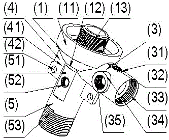 本实用新型的目的在于提供一种接口丰富的一体式磁能发热体配件,包括主体部分(1)、进水部分(3)、出水部分(5)、安装固定部分(4),并设有进水温度传感器、出水温度传感器和压力传感器接口,并采用压铸方式一体成型。本实用新型用于电磁热水,水电分离,安装方便,一体成型,稳定性高,接口丰富便于简化外围管道。