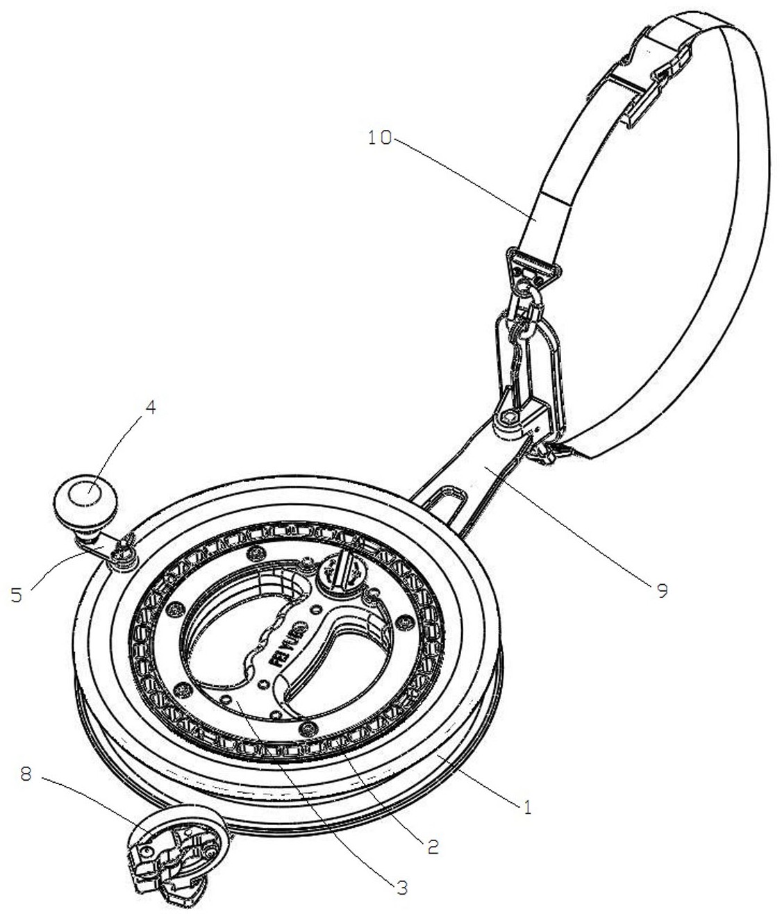 本实用新型涉及风筝制造技术,具体是一种风筝轮,包括绕线轮和手握,还包括中间轮,所述中间轮外圈固连在绕线轮内圈中,所述中间轮内圈中转动连接手握;所述中间轮的内圈沿其径向向内一体延伸有凸台,所述凸台的一侧面设有环形分布的若干棘齿槽,所述手握上设有旋钮器,所述旋钮器可往复旋转以卡住或脱离棘齿槽。此风筝轮塑料件创新结合,能克服原来塑料轮“爆盘”和金属轮太重、不美观等缺点,成本也更低。