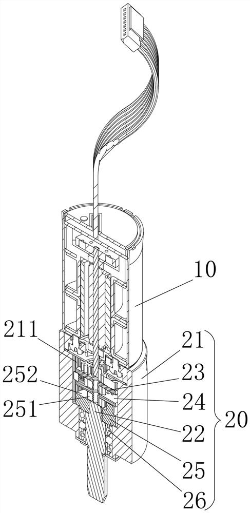 本实用新型公开了一种新型的减速电机,包括有电机部分、减速器部分,减速器部分包括有壳体、输出主轴、第一行星齿轮组、第二行星齿轮组,第一行星齿轮组包括有第一行星架、第一行星轮、输入太阳轮、输出太阳轮、以及用于将第一行星轮固定于第一行星架的限位件,第一行星架设有用于安放第一行星轮的支轴,支轴开有限位盲孔,限位件卡接于限位盲孔,限位件设有若干呈圆周阵列的弹性卡瓣,弹性卡瓣处设有倒勾键,第一行星架设有与倒勾键相配合的限位槽,第一行星架设有用于连接辅装杆的中央连接孔。本实用新型有效地保证了第一行星轮、第二行星轮与壳体的内齿轮之间的啮合精度,极大地提升了整个减速电机的产品质量。