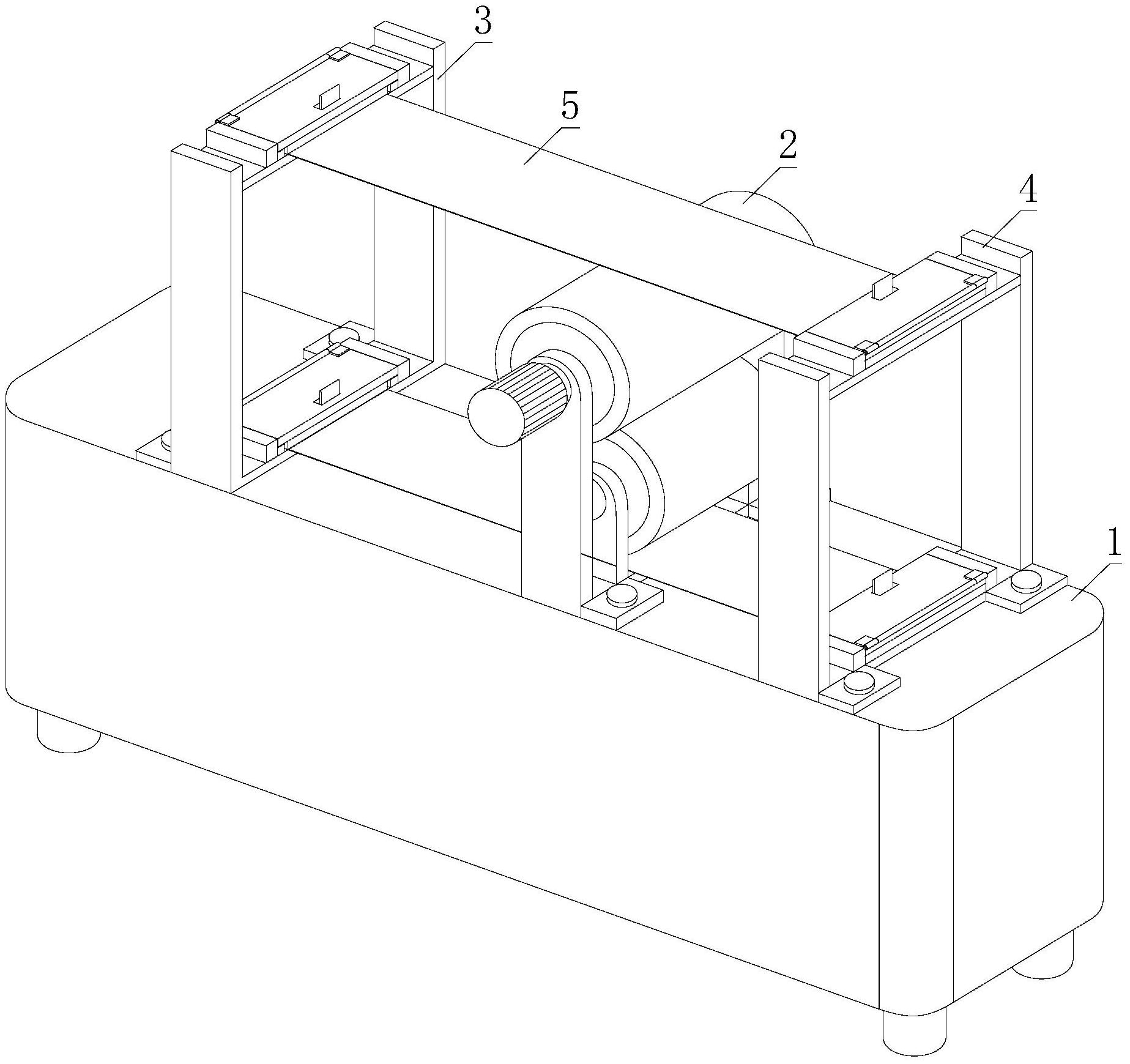 本实用新型公开了一种具有静电除尘功能的纸巾表面处理装置,包括安装底座、除尘组件、第一丝绸架、第二丝绸架和丝绸,除尘组件固定安装在第一丝绸架和第二丝绸架之间,第一丝绸架和第二丝绸架之间固定安装安装有两段丝绸,且丝绸分别设置在除尘组件的上下两端,操作者通过启动电机,电机会带动宽滚轮进行转动,且宽滚轮带动窄滚轮进行转动,宽滚轮和窄滚轮分别与丝绸之间进行摩擦,从而使得宽滚轮和窄滚轮的表面带有静电,操作者通过将纸巾放置在宽滚轮和窄滚轮之间,通过宽滚轮和窄滚轮上的静电,从而可以将纸巾上表面进行吸附除尘处理,操作起来快捷方便,且可以对纸巾进行全面的除尘处理,提升了除尘效率。