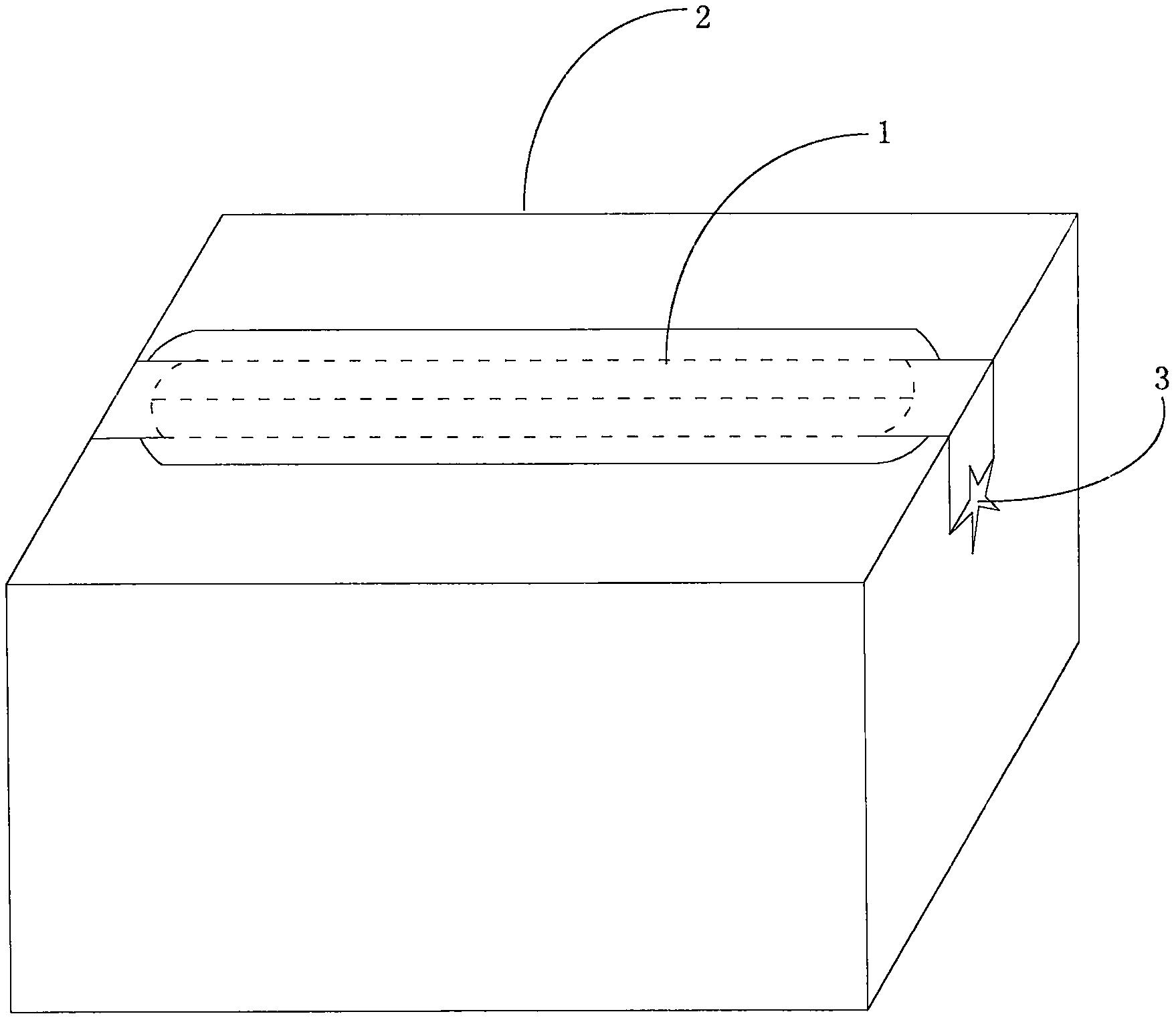 本实用新型涉及一种抽取式纸巾包装袋,包括用于放置纸中的柔性袋,柔性袋的顶面上形成有两条易撕虚接线,两条易撕虚接线沿着柔性袋的顶面的长度方向延伸且相互平行,两条易撕虚接线两端呈圆弧状连接并在的柔性袋的顶面的中部形成一长条形撕口区,两条易撕虚接线的外侧设有平行于易撕虚接线的实压线。本实用新型结构简单,设计合理,方便使用且可避免抽取式纸巾包装袋受损的纸巾包装袋;本实用新型开口间隙大,方便纸巾的抽取使用。