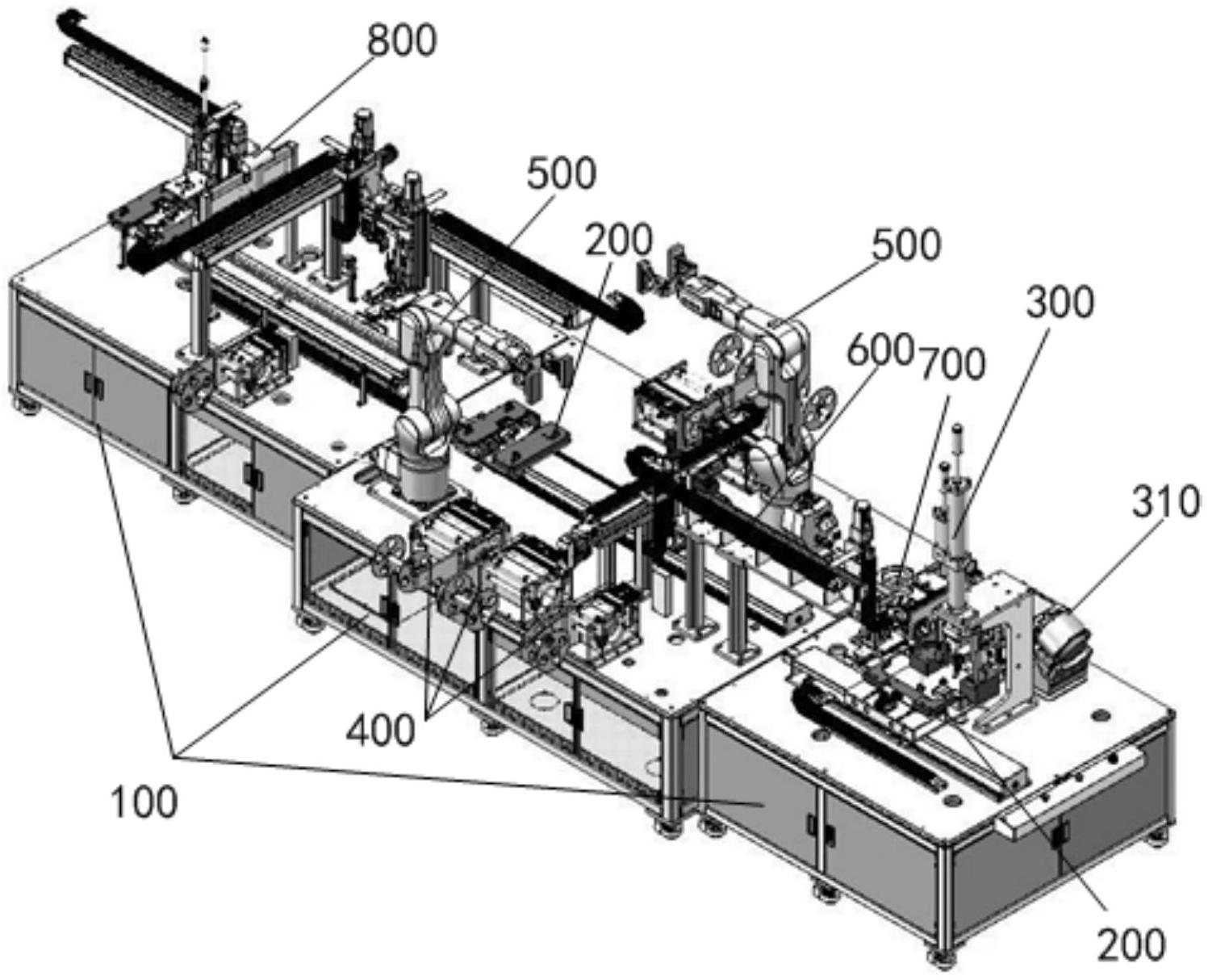 本实用新型公开了一种铆接贴标设备,包括工作台,分布有多个工作位,包括铆合位、贴标位;工件治具,用于支撑待加工的工件;移位机构,设置在工作台上,工件治具安装在移位机构上,移位机构运转时带动工件治具依次到达多个工作位。本实施例提供的铆接贴标设备将铆合、贴标等工作均设置在工作台上,将需要进行铆合贴标的工件放置在该工作台的起始位置,工作台上的装置顺次进行铆钉铆合、取标、贴标的工作,生产过程中的速度保持一致,单小时的工作量能够根据实际的需求进行改动,也非常容易达标;同时,采用机械结构进行相应的铆合贴标工作,标签的贴附位置不会产生改变,标签不会出现歪斜或者贴错区域的情况出现,工件的品质得到较好的保障。