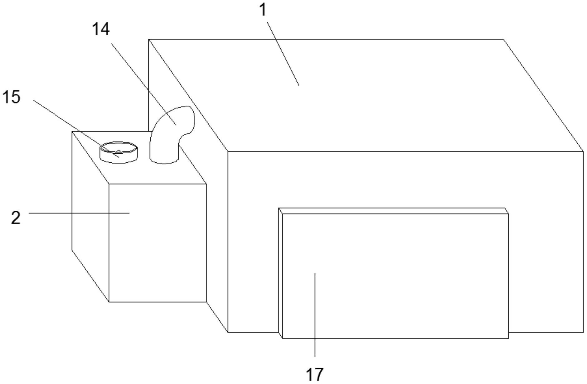 本实用新型涉及食品卫生技术领域,且公开了一种循环式食品防臭装置,包括机体,所述机体左侧固定有风室,所述机体内部固定有横板,所述机体内部位于所述横板下方固定有竖板,所述竖板顶端与所述横板下表面固定连接,所述竖板内部贯穿固定有两个循环风机,所述机体内部位于所述横板下方设有两个食品车,本实用新型通过设置循环风机、食品车、万向轮、加热板、分流板,打开循环风机对食品进行风干,加热板对气流进行加热升温,烘干食品内的水分,部分气流通过回风口进入回风管,回到机体内部,还有部分湿热气流通过排湿扇排出,使得食品可以循环烘干保存,防止食品因为内部水分与外部潮湿环境导致变质发臭。