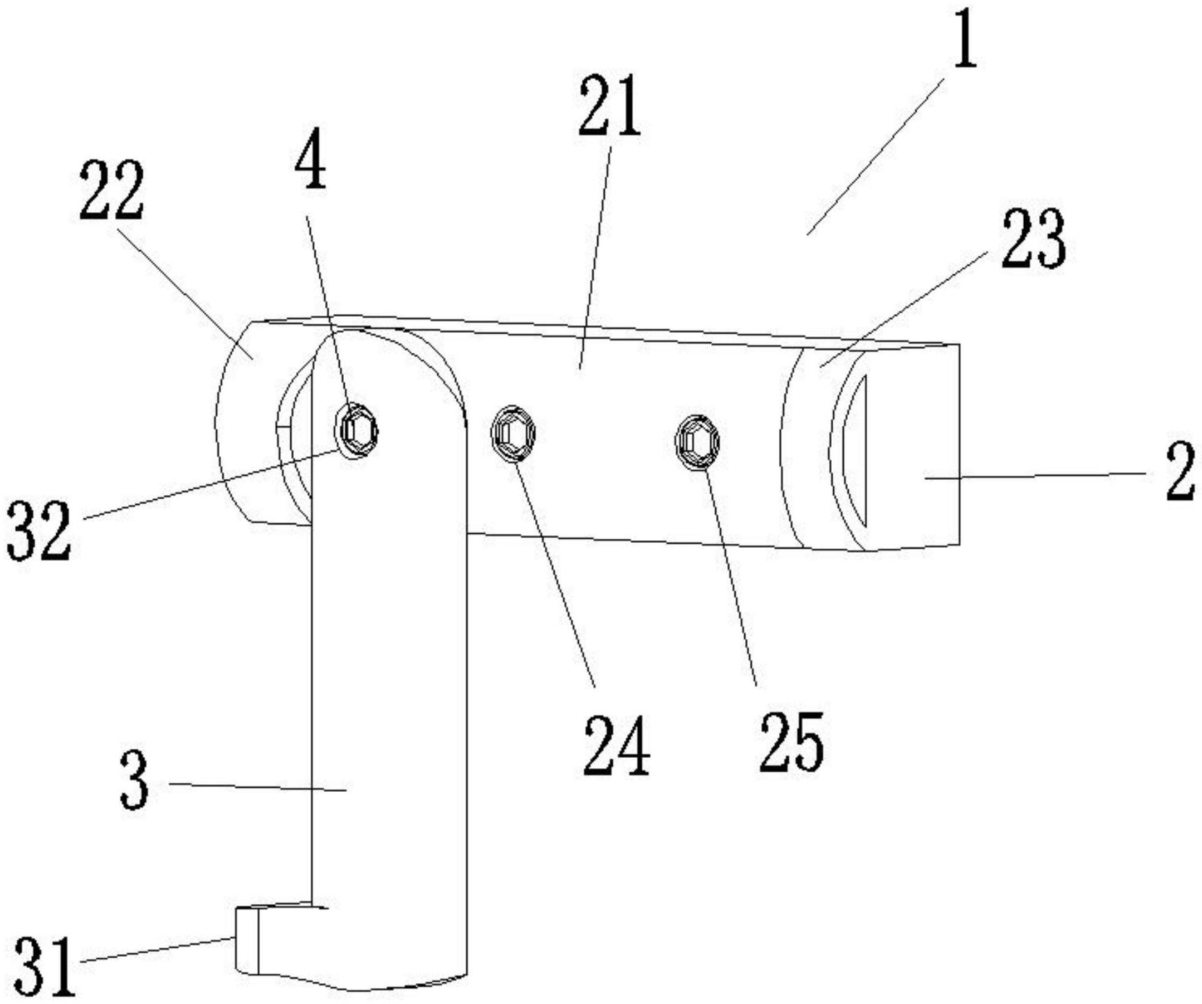 本实用新型公开了一种隐藏式的滑板车脚撑,脚撑本体由第一基体和第二基体通过螺栓连接构成;所述第一基体中部设置有凹陷区,两端设有第一连接部和第二连接部,第二基体一端设有第三连接孔,另一端一侧设有第一延伸部,所述第二基体通过第三连接孔使用螺栓、弹簧垫片、螺母连接于第一基体的通孔中;本实用新型第二基体与第一基体的宽度相同,第二基体旋转放下作为脚撑,收拢后与第一基体无缝贴合,第一基体与滑板车板面的侧面无缝衔接,闭合的脚撑可以隐藏在滑板车板面的侧边上,起到隐藏和美观的作用,收起后不易触碰,不会对使用人的脚步进行意外伤害。