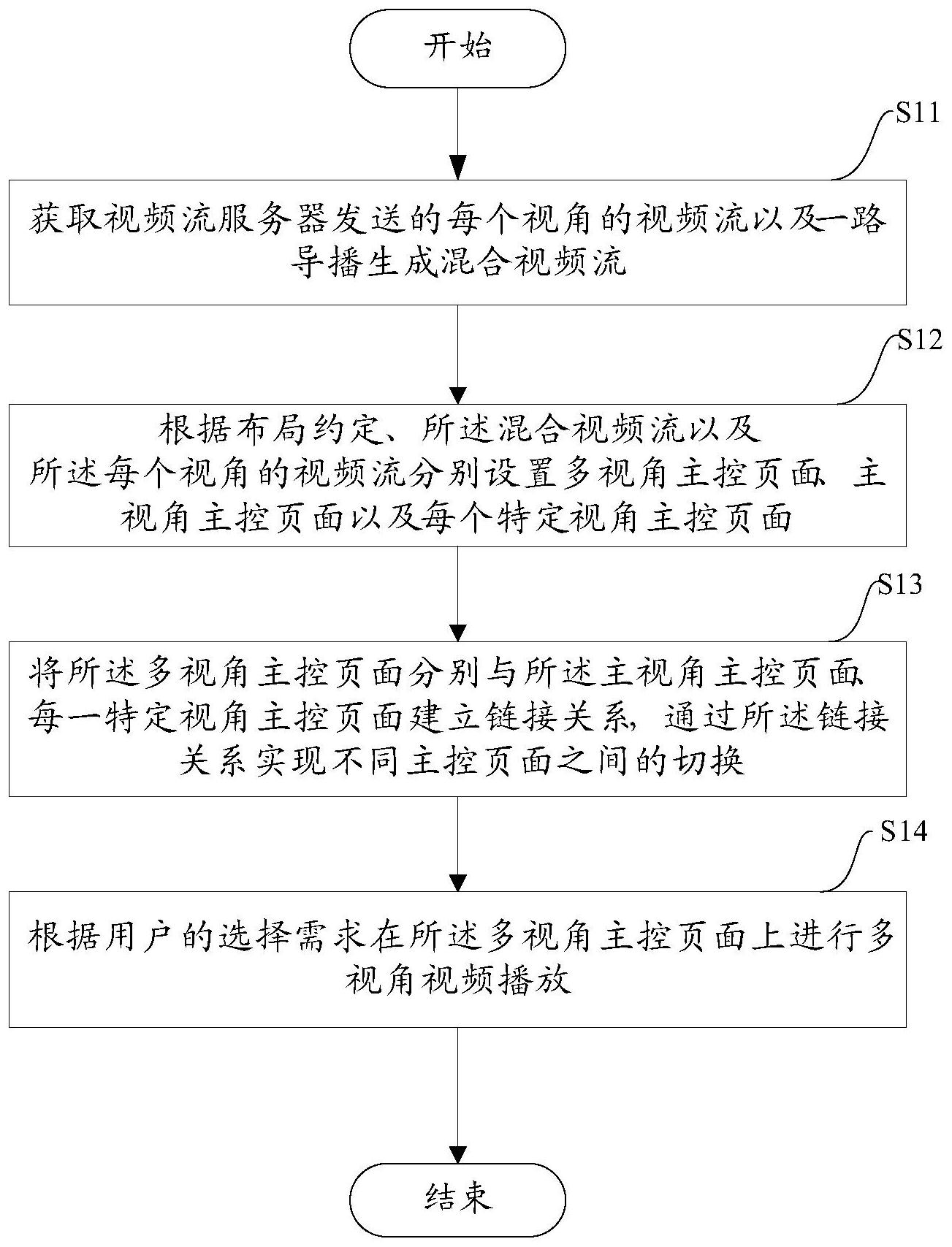 本申请的目的是提供一种多视角视频播放和切换的方法、系统及介质,本申请通过在视频流服务器将多个特定视角视频生成每个视角的视频流,以及一路导播混合生成混合视频流,将所述每个视角视频流以及混合视频流发送至播放终端;在播放终端根据布局约定、所述混合视频流和每个视角的视频流分别设置多视角主控页面、主视角主控页面以及每个特定视角主控页面;将所述多视角主控页面分别与所述主视角主控页面、每一特定视角主控页面建立链接关系,通过所述链接关系实现不同主控页面之间的切换;根据用户的选择需求在所述多视角主控页面上进行多视角视频播放。从而实现多视角视频观看的效果,成本低以及效果明显。