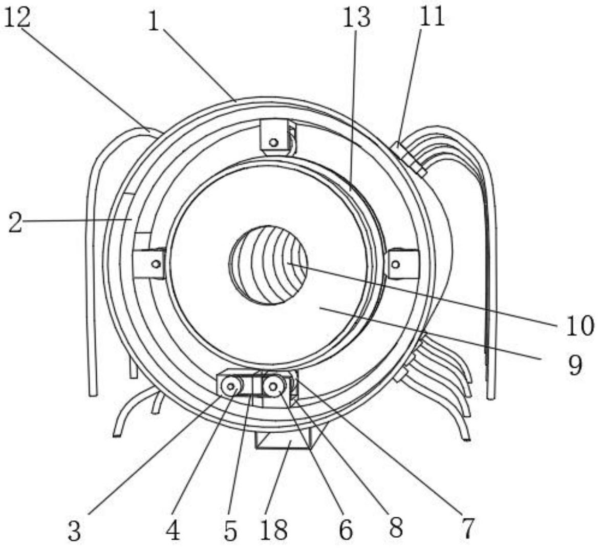 本实用新型涉及农业机械技术领域,公开了一种防止种子失活的农作物种子消毒装置,包括外壳,所述外壳前后两侧内壁固定连接有两个外滑轨,所述外滑轨内侧均匀分布着四个底座,所述底座内侧均转动连接有转轮,所述转轮外侧均设置在内滑轨的内部,所述外滑轨下侧固定连接有伺服电机,所述金属过滤网内部固定连接有两片螺旋形状的搅拌板,所述金属过滤网外侧前后两端均固定连接有内滑轨,所述外壳下侧设置有漏水孔,所述外壳底部固定连接有的废料收集槽。本实用新型中,药剂通过喷头注入设备,搅拌板将种子分离和向后移动,从设置在装置后侧的出料托盘收集,金属过滤网的孔洞将药剂分离,无须人工进行药剂与种子分离工作。