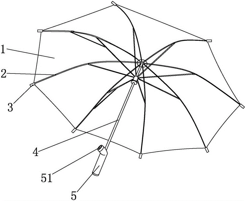 本发明涉及日常生活用品领域,具体涉及一种纤维波导空气指数监测伞具,包括伞布、伞骨、伞杆以及伞柄,所述伞布周边通过若干个珠尾套件和伞骨末端连接,珠尾套件均内置有传感器模块,伞骨将传感器模块的信号传输给置于伞柄内的控制板,所述伞柄上还设有切换旋钮和电源模块,切换旋钮的中部内嵌有LCD显示模块,所述LCD显示模块、切换旋钮均与控制板连接,电源模块和控制板相连,本发明通过传感器模块,实时监测当前空气环境的各个参数值变化并显示在伞柄上,而纤维波导材料可很好的接收外界的各空气指数信号,整体并由微处理器综合分析对比,实时反馈,提供相应的数据显示及警示,能够很好的为伞具使用者提供附加的监测报警功能。