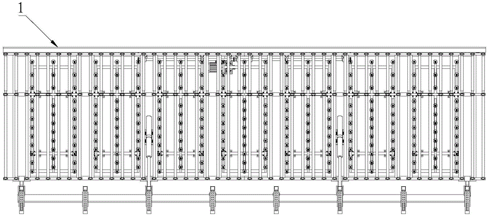 本实用新型涉及玻璃加工技术领域,尤其涉及液压翻转下片机,包括机床以及分别设置在所述机床上的传送机构和下片机构;所述传送机构包括传送辊、传送带和传送电机;两个以上所述下片机构沿平行于所述传送带的送料方向的方向依次设置在所述机床上,所述下片机构包括第一液压缸、翻转臂、第二液压缸、滑动臂和吸盘,所述第一液压缸的另一端与所述翻转臂的一端转动连接,所述翻转臂的另一端与所述机床转动连接,所述翻转臂沿垂直于所述传送带的送料方向的方向设有第一滑轨,所述第二液压缸设置在所述翻转臂上并与所述滑动臂连接,两个以上所述吸盘设置在所述滑动臂上。本实用新型提供的液压翻转下片机结构巧妙、易于操控和调节,灵活性好。