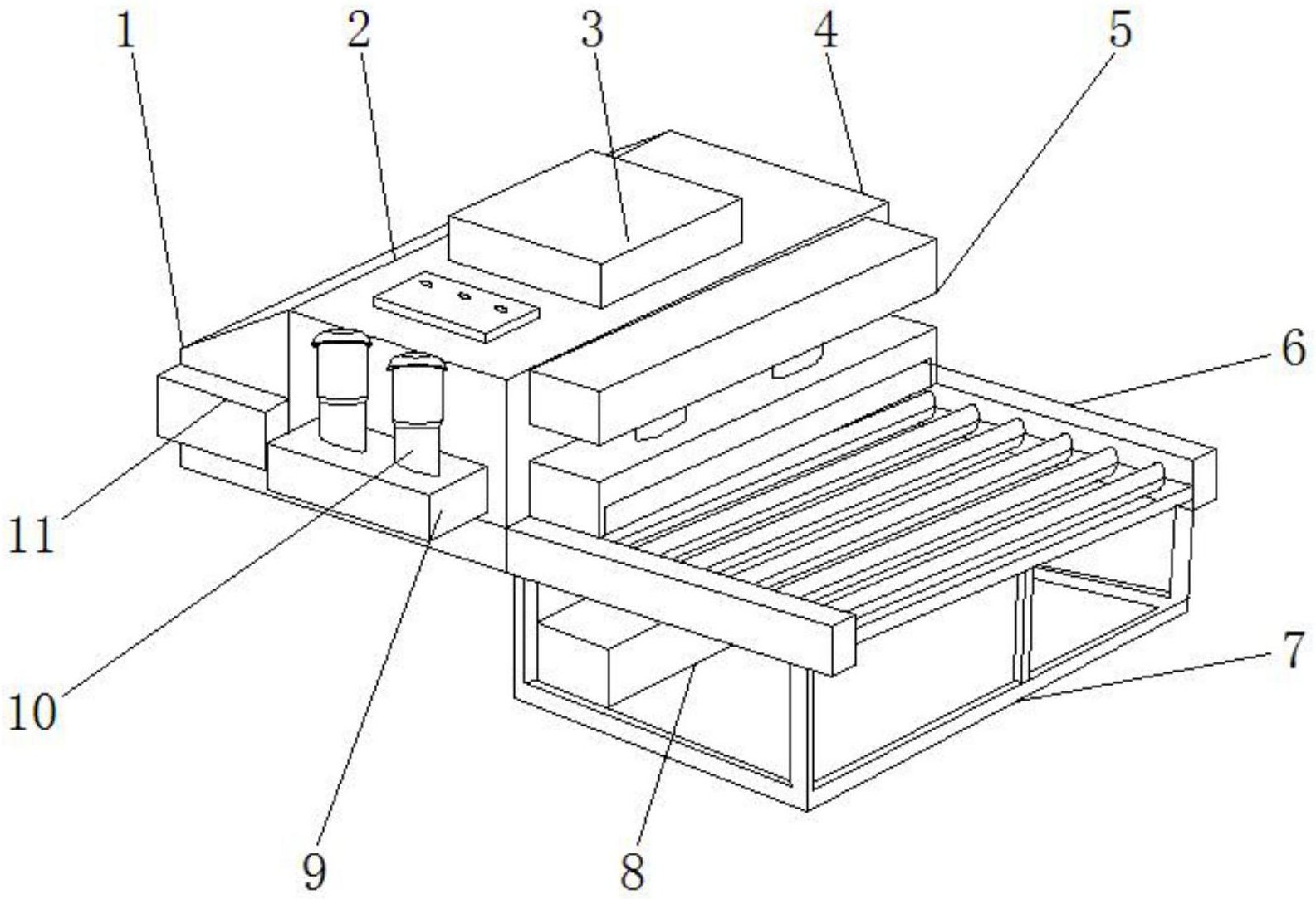 本实用新型公开了一种高速平板玻璃清洗机,包括第二保护外壳,所述第二保护外壳的上端面中心位置嵌接有清洗主体,所述清洗主体包括第一三相异步电动机、转动轴、清洁海绵垫、固定板和连接卡轴,所述转动轴转动连接在第一三相异步电动机的下端面中心位置,所述固定板固定连接在转动轴的下端面,所述连接卡轴均匀等距固定插接在固定板的外端面四角,所述清洁海绵垫固定在固定板的下端面,所述第二保护外壳一端侧壁固定有对称分布的鼓风机,所述第二保护外壳的一端外壁固定有第一保护外壳,所述第一保护外壳的内部固定连接有滚动清洗器。本实用新型通过设有清洗主体、滚动清洗器和输送机,能对玻璃进行全方位的清理,同时也能提高装置的工作效率。