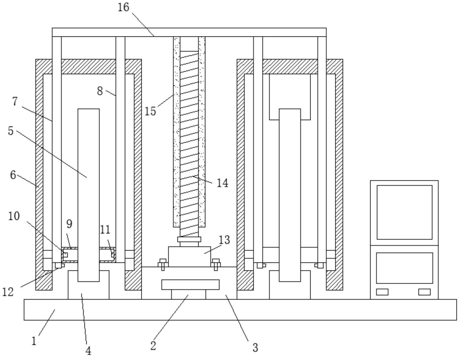 本实用新型公开了一种玻璃加工用智能合格检测装置,其包括底座,所述底座的顶部固定有滑轨和固定座,固定座对称设置于滑轨的两侧,所述固定座固定有纵向放置的玻璃,滑轨上滑动配合有滑动座,所述滑动座的两侧均固定有竖向的移动板,移动板的内侧活动插接有分别位于玻璃两侧的第一插杆、第二插杆,所述第一插杆和第二插杆的下端均固定有罩设于玻璃上的安装罩,安装罩靠近玻璃的一侧开口,位于同一个移动板内的两个安装罩的内侧分别固定有声音发生器和声音强度感应器。本实用新型不仅能够用于对玻璃进行检测,且一次性能够对两个玻璃进行检测,检测效率高,另外,能够对多项内容进行检测,检测效果好,整个装置结构简单,制作成本低。