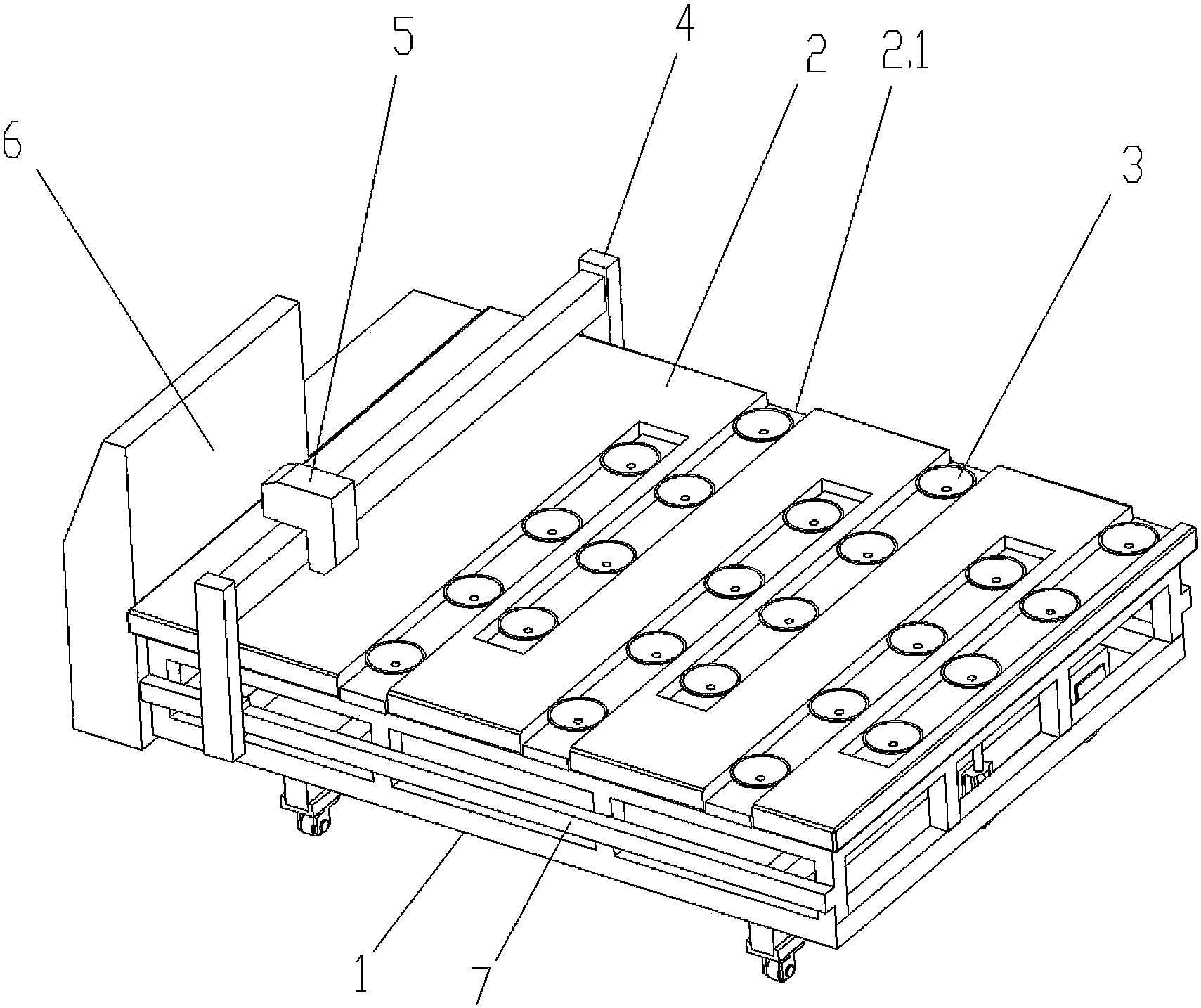 本实用新型涉及一种双翻玻璃切割一体机,包括机架,机架上方两侧分别设置一组U型槽,两组U型槽间隔错位布置,在所述机架的上侧设有支撑板,在所述支撑板上方两侧分别设有一组U型开口,两组U型槽与两组U型开口一一对应设置,在每个所述U型开口内均设有一个翻转板,在每个翻转板上均设有一组吸盘,每个所述吸盘均通过气管连接气源,在翻转板的下侧均设有翻转装置气。本实用新型的优点:本实用新型所提供的一种双翻玻璃切割一体机,实现了对玻璃的自动切割和装夹,且机架能够移动和转动,该一体机两侧均能够放置玻璃架,适用性强,无需大范围移动基架,提高了工作效率,该一体机的机架强度高、稳定性好,采用三层结构组合而成,合理利用机架空间。