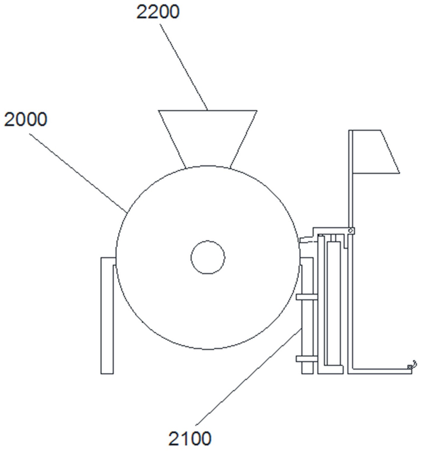本实用新型涉及一种聚丙烯管材挤出机的加料装置,包括固定架、翻转架与提升缸,所述固定架固定至挤出机的机架上,所述翻转架设置于所述固定架的一侧,所述提升缸的底端固定至所述固定架上,所述提升缸的活塞杆连接至所述翻转架上;所述提升缸的活塞杆顶部伸出高度与所述挤出机的高度一致。实用新型的一个用途是,将本装置固定至挤出机的机架上,将袋装的聚丙烯颗粒原料放置于翻转架上,提升缸带动翻转架上升,使之与挤出机的加料口处于同一高度,转动翻转架将聚丙烯颗粒倾倒至挤出机的加料口,从而完成加料;本装置结构简单,操作方便,且占地面积小。
