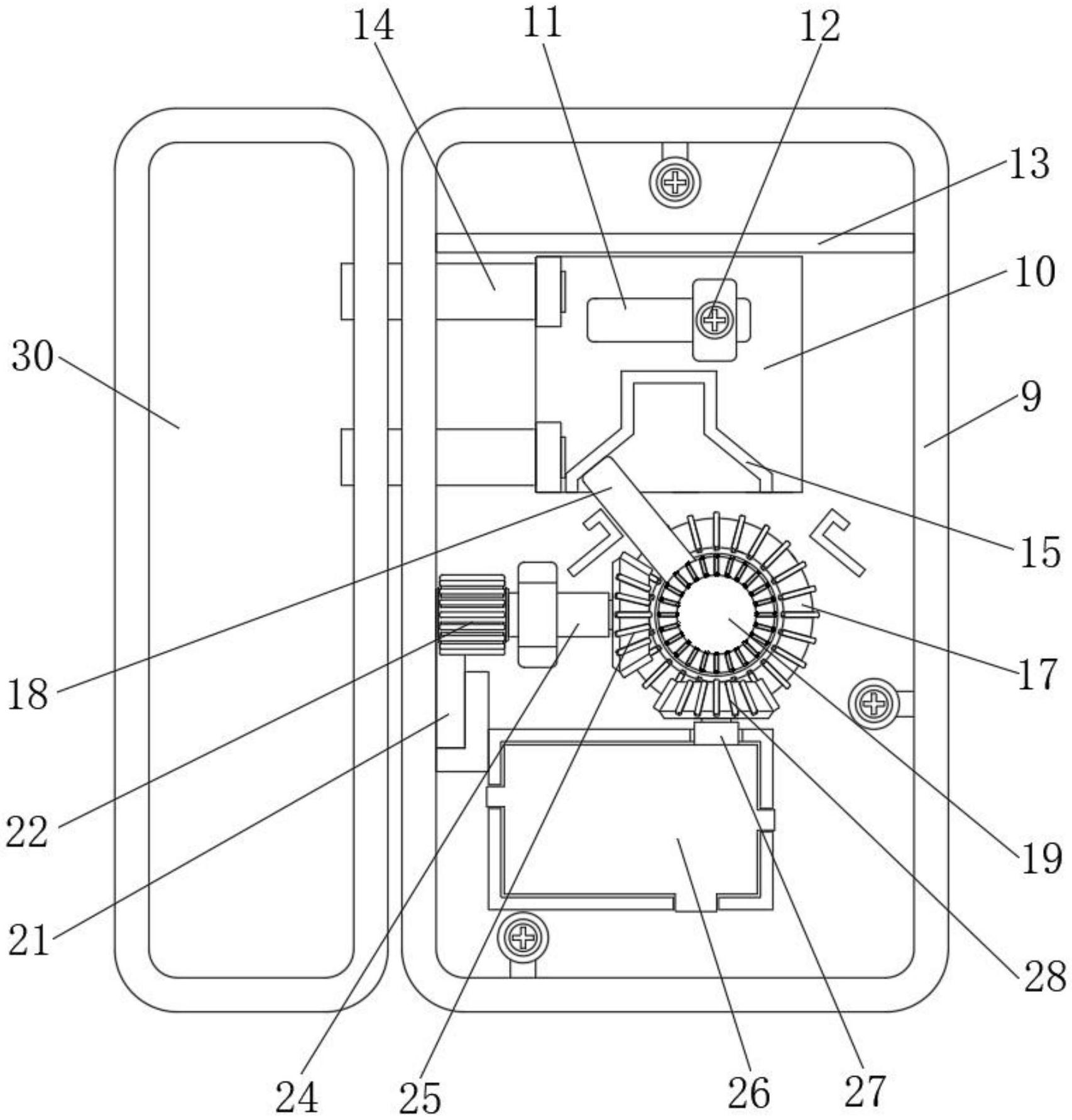 本实用新型公开了一种具有紧急情况下应急开启结构的钥匙门禁锁,包括第一锁体、钥匙锁、控制盒和伺服电机,所述第一锁体的正面铰接有活动门,且活动门与第一锁体之间固定安装有钥匙锁,所述第一锁体的内部开设有钥匙槽,且钥匙槽的内部镶嵌有应急钥匙,所述钥匙槽的侧边固定安装有套筒,且套筒的内部插设有插杆,所述插杆的外侧套设有弹簧,所述第一锁体的背面设置有第二锁体。本实用新型通过设置应急钥匙上装配的齿牙与第一齿轮外侧装配的齿牙相适配,使得该装置在意外锁死情况下,通过应急钥匙插入钥匙口内部使得拨杆转动,从而将锁杆收入第二锁体内部,有利于使得该装置在意外锁死状态下打开,有利于避免暴力拆除带来的不良影响。
