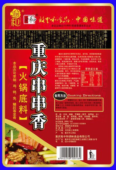 1.本外观设计产品的名称:包装袋(重庆串串香火锅底料)。2.本外观设计产品的用途:包装火锅底料。3.本外观设计产品的设计要点:在于图案。4.最能表明设计要点的图片或照片:主视图。5.本外观设计产品为平面产品,省略左视图,右视图,俯视图和仰视图。