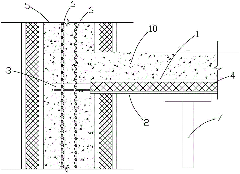 本实用新型公开了一种免拆建筑节能楼板,包括上定位架板和下定位架板,上定位架板与下定位架板之间均匀分布有四根“C”型钢,“C”型钢的上下两个侧面分别通过螺栓连接上定位架板和下定位架板,中间的两个“C”型钢通过钢筋固定连接在主梁柱内,上定位架板与下定位架板之间形成一个空腔,空腔内嵌有保温材料,相邻的两个楼板之间设置有管道。本实用新型结构简单,操作便捷,实用性强,不仅缩短了楼层面板的施工工期,降低劳动强度,而且提高了现浇混凝土楼面层的质量,并且具有节能、免拆功能,经济效益显著。
