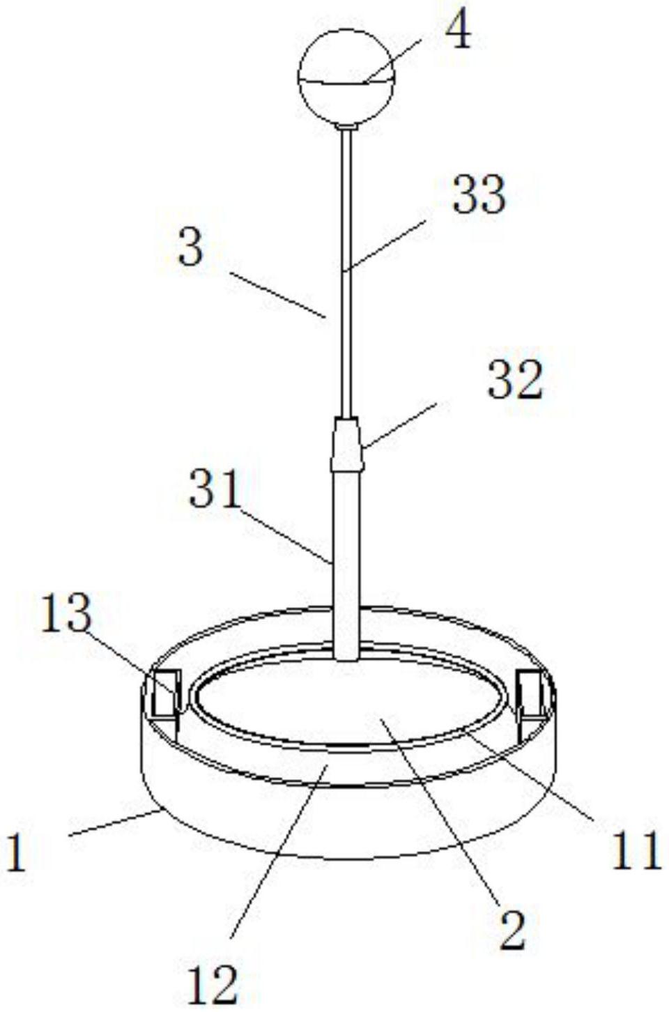 本实用新型属于乒乓球训练器技术领域,尤其是一种带收纳功能的乒乓球训练器,针对现有的乒乓球训练器不便于调节训练使用高度,不方便对乒乓球收纳的问题,现提出如下方案,其包括底座盒,底座盒为环形结构,底座盒的中心位置开设有通孔,底座盒上设置有收纳槽,收纳槽的内壁设置有防滑纹,底座盒内设置有配重座,配重座的顶部连接有可调立杆,可调立杆的顶部连接有乒乓球,所述收纳槽的内壁上对称设置有两个球拍收纳盒,所述配重座为椭圆金属材质,且为空心结构,配重座的底部通过螺丝连接有封堵板,配重座的顶部开设有螺纹孔。本实用新型不仅可以将乒乓球收纳,同时可以调节训练使用高度。