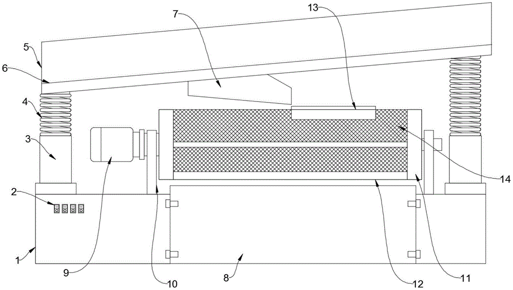 本实用新型公开了一种鱼饵加工用分筛机,涉及鱼饵加工领域,为解决现有技术中的现有的分筛机在对鱼饵加工时,去除废料的效率不高的问题。所述驱动电机的一侧安装有支架,所述支架的一侧安装有滚筒筛分机,所述滚筒筛分机的下端面设置有底板,所述滚筒筛分机的上端设置有开槽,所述滚筒筛分机的外表面设置有第一过滤网,所述挡板的一侧设置有震动电机安装箱,所述震动电机安装箱的一侧设置有下料槽,所述下料槽的内部安装有固定筛板,所述固定筛板的下方设置有下料口,所述固定筛板的外表面设置有第二过滤网,所述滚筒筛分机内部的上方设置有第二下料斗,所述第二下料斗的下方设置有抽板,所述抽板的两侧均设置有滑槽。
