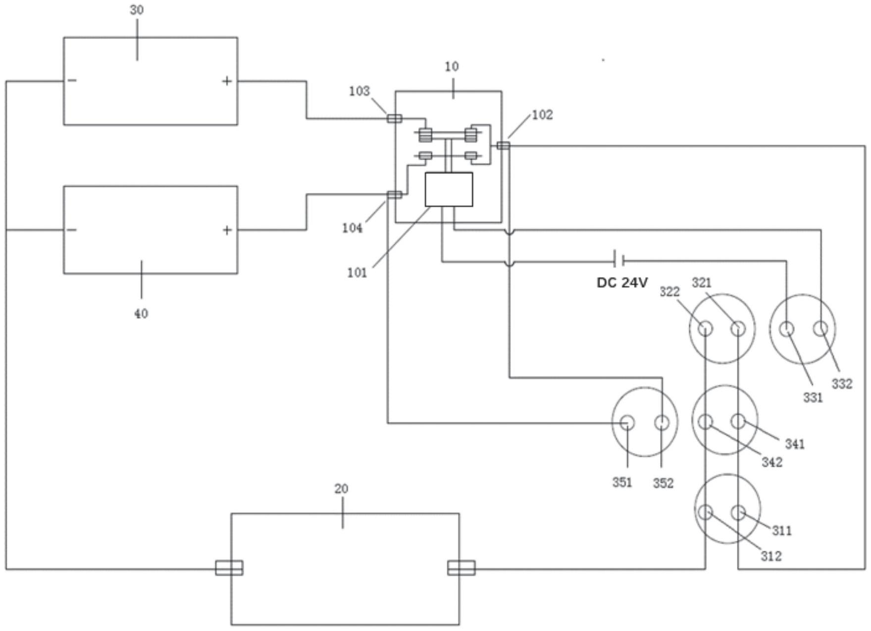 本实用新型提供了一种柴油机消防泵强启系统,包括:直流接触器、柴油机启动马达、主用电瓶、备用电瓶、接线装置;所述主用电瓶、备用电瓶分别与所述直流接触器连接;所述接线装置分别连接直流接触器和柴油机启动马达。所述接线装置进一步包括主用电瓶接线柱、备用电瓶接线柱、双电瓶切换接线柱、双电瓶接线柱和双电瓶并联接线柱。本实用新型采用3组相同功能接线柱,安全系数高,结构简易,成本低;能通过切换操作装置,实现主电瓶、备用电瓶和双电瓶强启,更加保险安全。