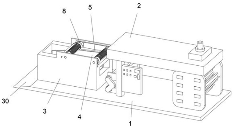 本发明涉及柔版印刷机技术领域,具体涉及多功能柔版印刷机。多功能柔版印刷机,包括底座,所述底座顶面右端固设有柔版印刷机主体,所述柔版印刷机主体左侧设有外壳,所述外壳呈U型结构,所述外壳内侧底面中部开设有导向槽,所述导向槽右部呈左小右大的等腰梯形柱结构,所述导向槽内部呈对称结构设有两个滚筒,所述导向槽底面相对于滚筒的位置开设有弧形槽,所述滚筒与弧形槽转动配合,所述滚筒底面开设有底槽,所述底槽呈弧形结构,所述导向槽左侧设有切割组件。本发明能定长并连贯的对印制好的承印物进行裁切,大大降低工作人员的操作难度,而且在将之裁切完毕后能自行打包出料,方便快捷。